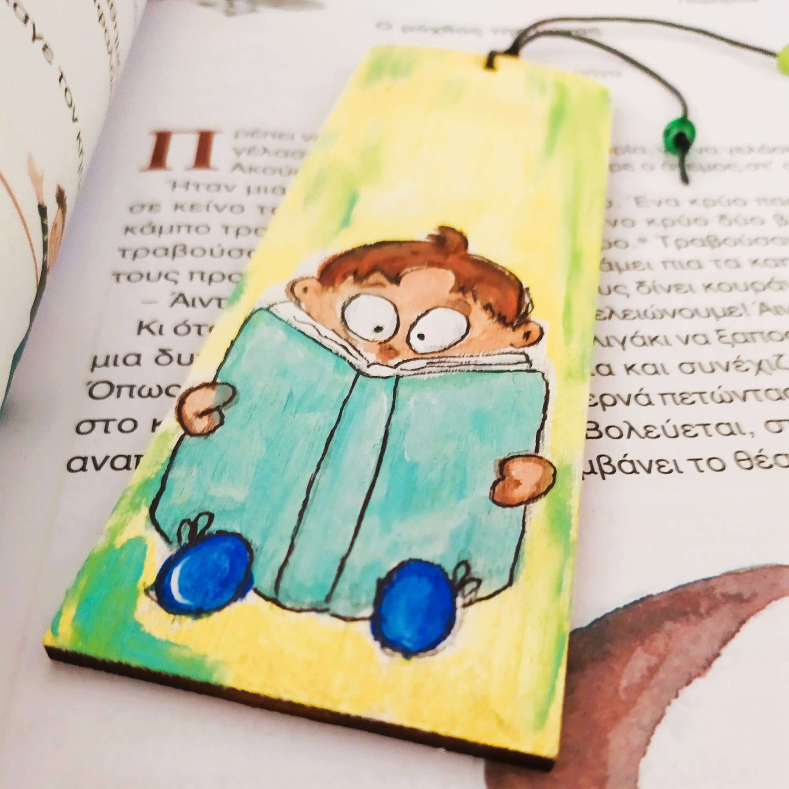Ξύλινος σελιδοδείκτης 15 εκατοστά ζωγραφισμένος στο χέρι ιδανικός  για μαθητή που ξεκινάει τώρα το σχολείο ή και μεγαλύτερο.