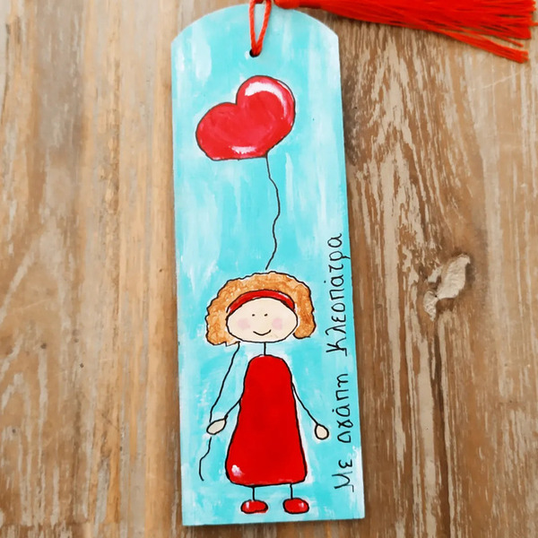 Ξύλινος σελιδοδείκτης 15 εκατοστά ζωγραφισμένος στο χέρι ιδανικός για δασκάλα ή δάσκαλο και για μαθήτρια που ξεκινάει τώρα το σχολείο.