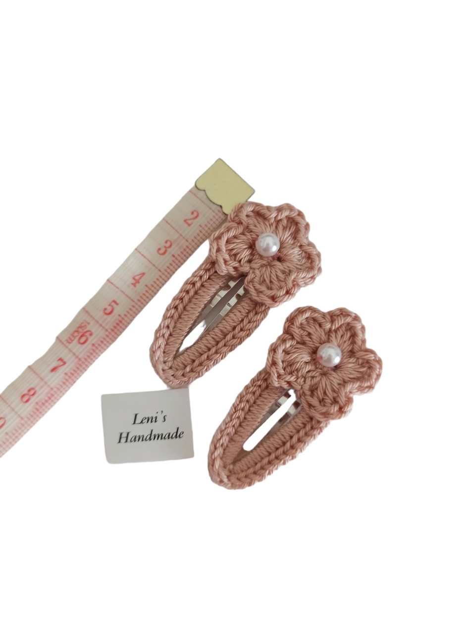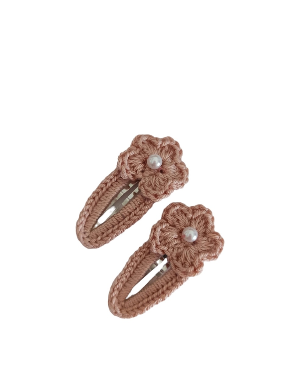 Πλεκτά κλιπ μαλλιών με λουλουδάκια