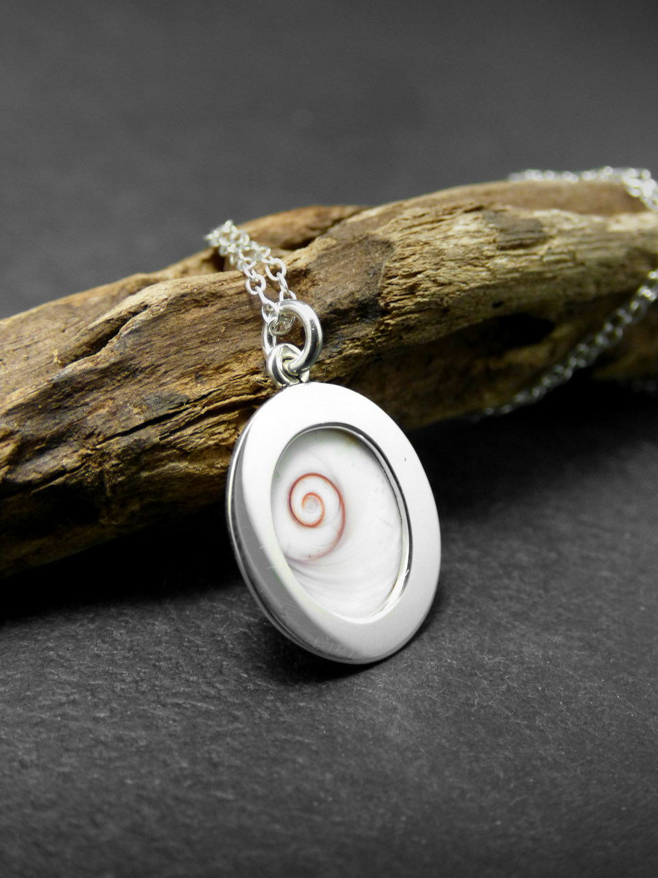 ► Mενταγιόν από ασήμι 925 και φυσικό Ματάκι της θάλασσας (1,5cm)!