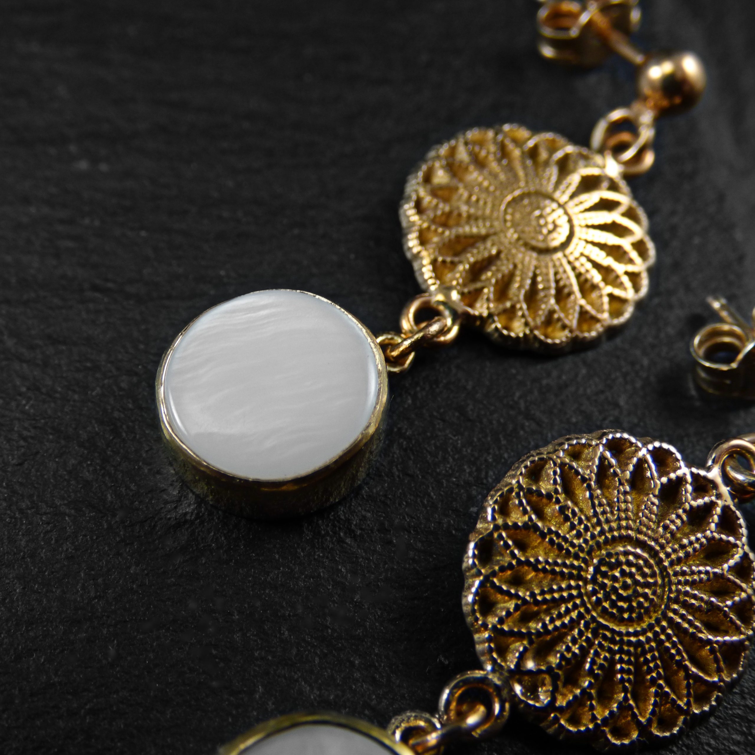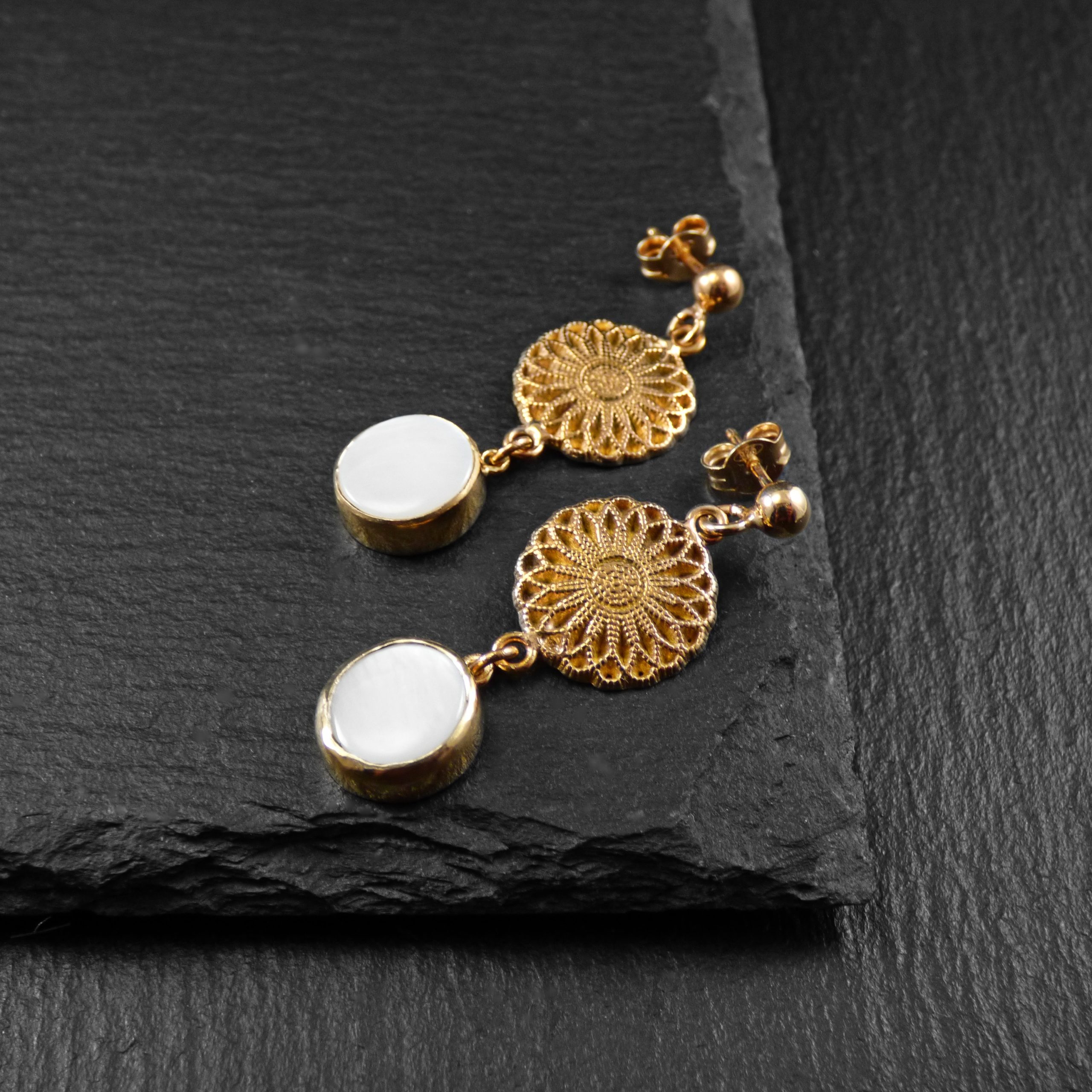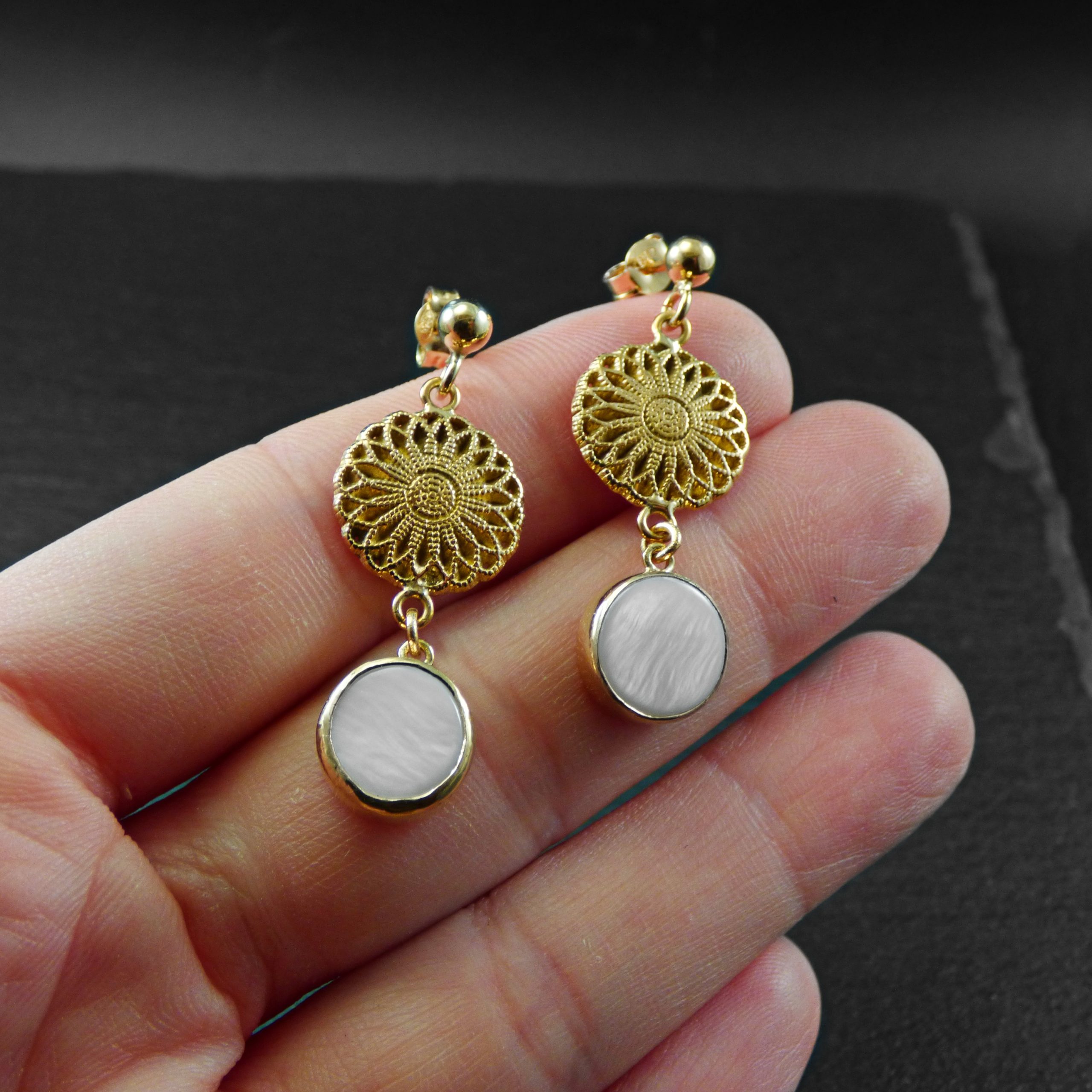 ► Μοναδικά χειροποίητα σκουλαρίκια με ημιπολύτιμους λίθους Λευκό Φίλντισι (10mm)!