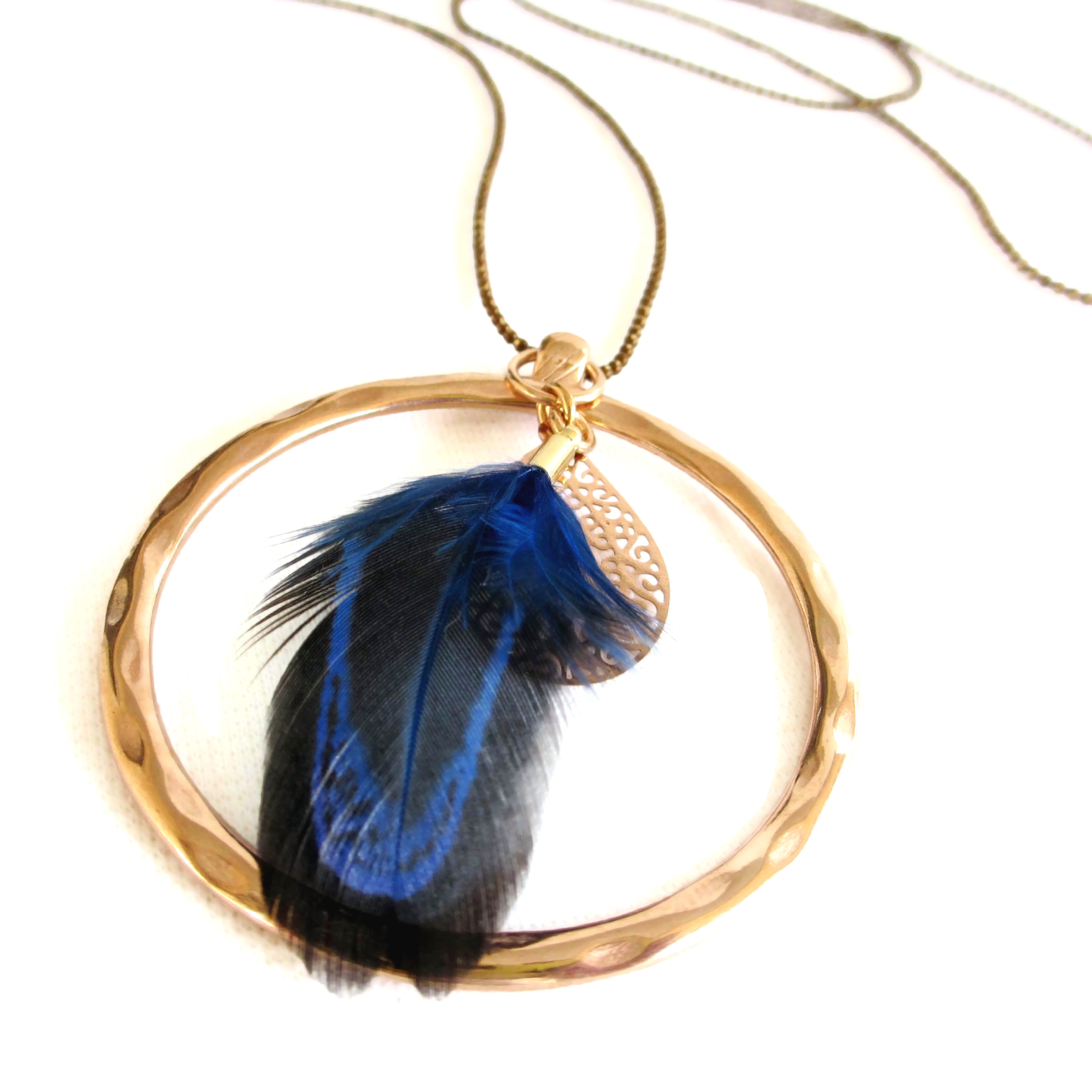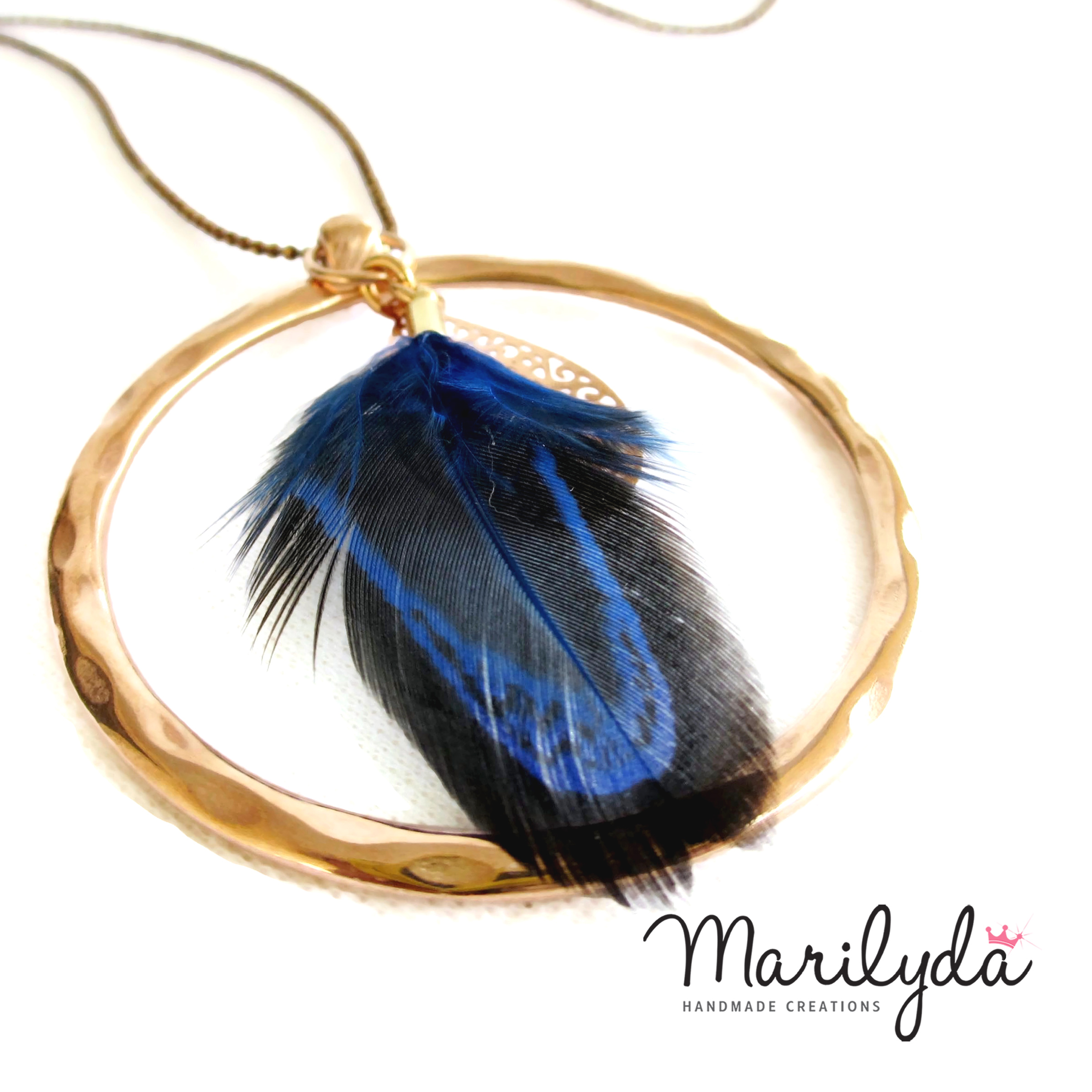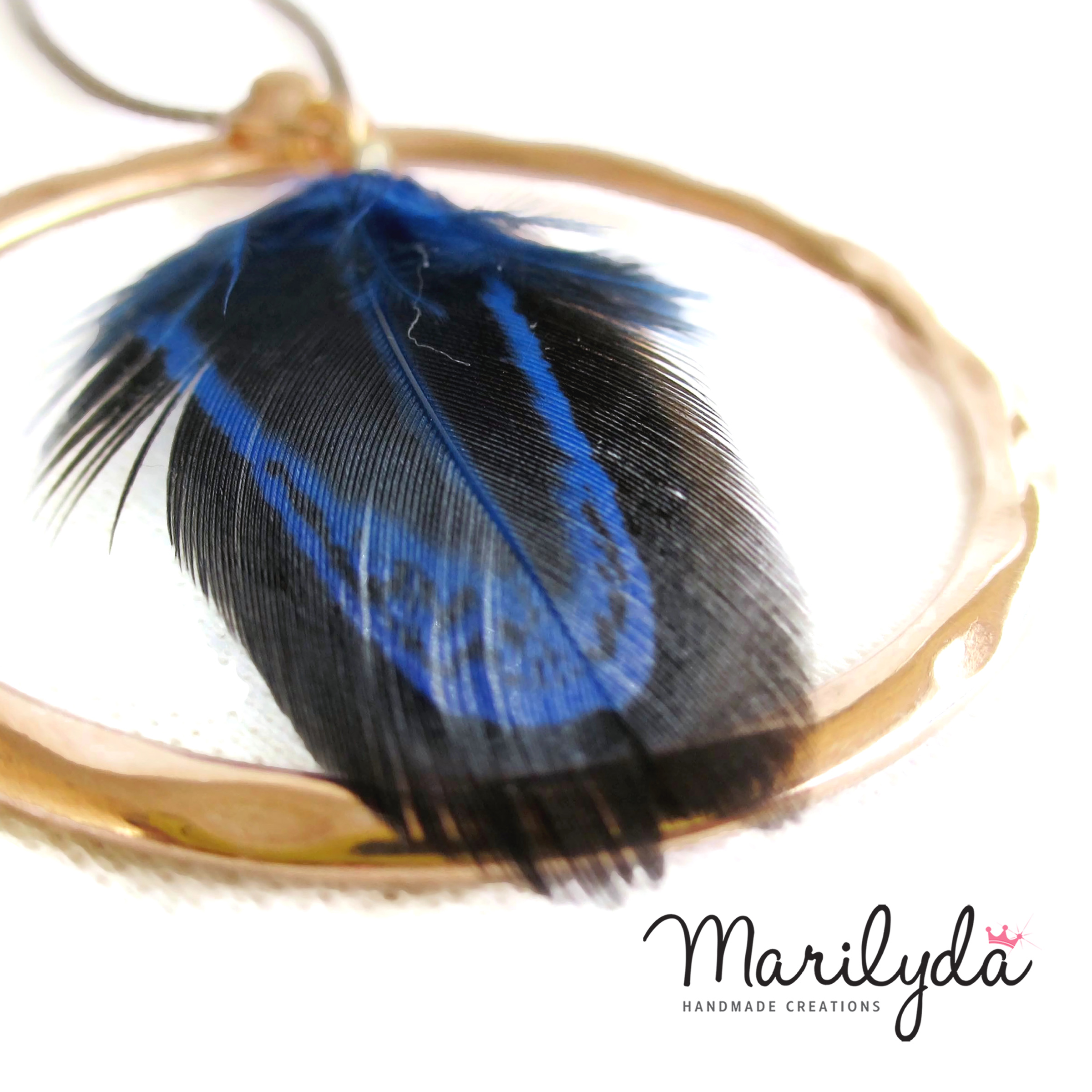 Κολιέ “Circle Feather” rose gold με μπλε φτερό πετεινού