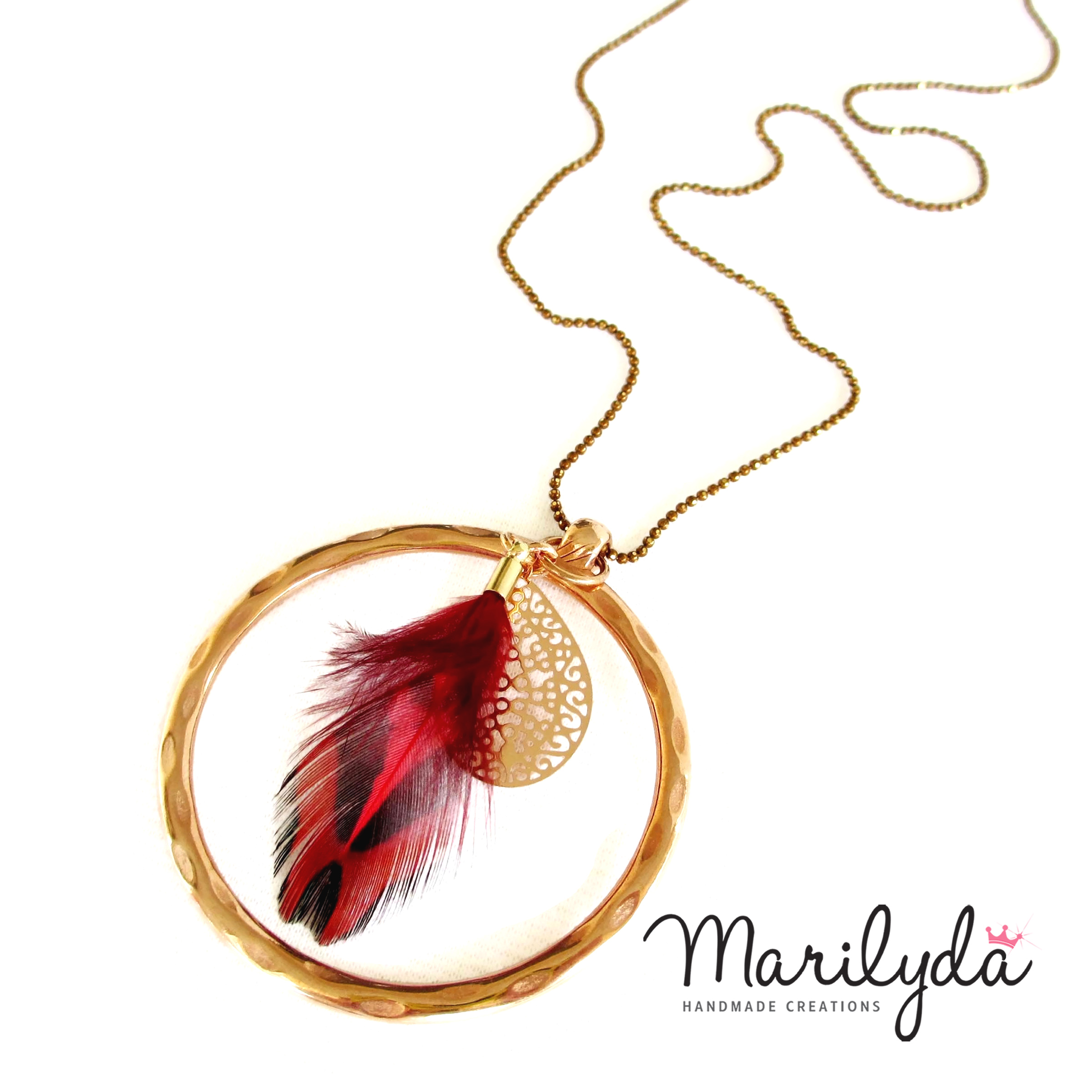 Ιδιαίτερο κολιέ με ροζ επιχρυσωμένο μεγάλο κρίκο και φτερό πετεινού σε δύο υπέροχες αποχρώσεις. Η διαμανταρισμένη εξαιρετικά λεπτή αλυσίδα του είναι σε χρώμα μπρονζέ για να μη μαυρίζει και να ταιριάζει με ότι χρώμα θέλετε!