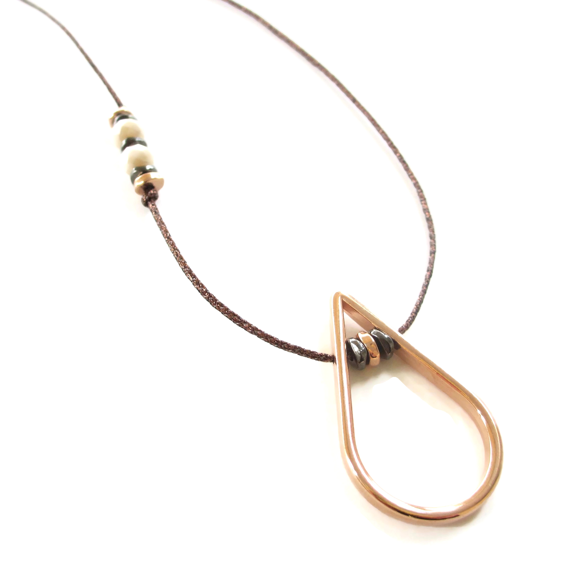 Είναι πραγματικά πολύ ιδιαίτερο αφού έχουν “δέσει” τόσο όμορφα το ροζ χρυσό με τα στοιχεία gun metal, τα εκρού κρυσταλλάκια και το μπρονζέ συρμάτινο κορδόνι.