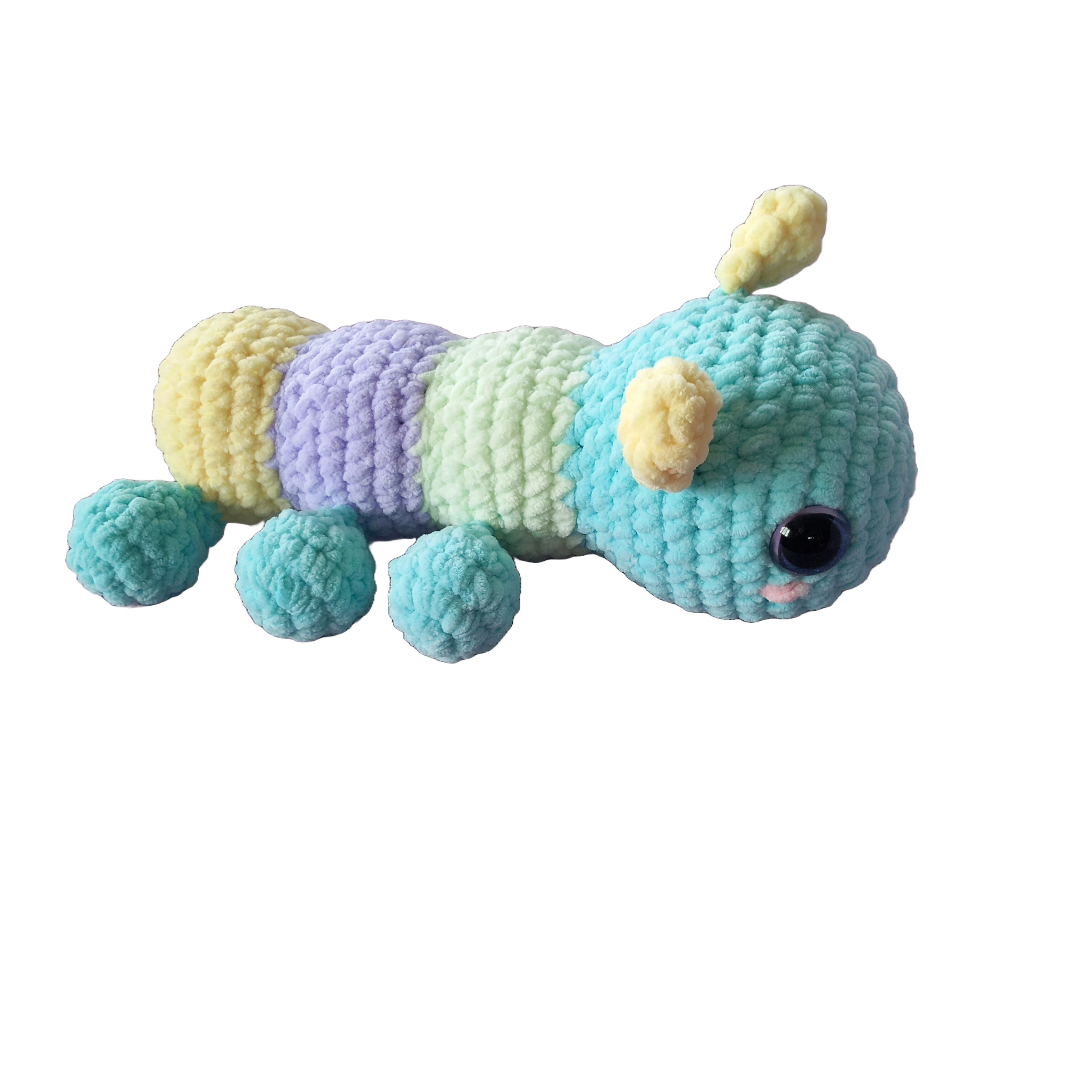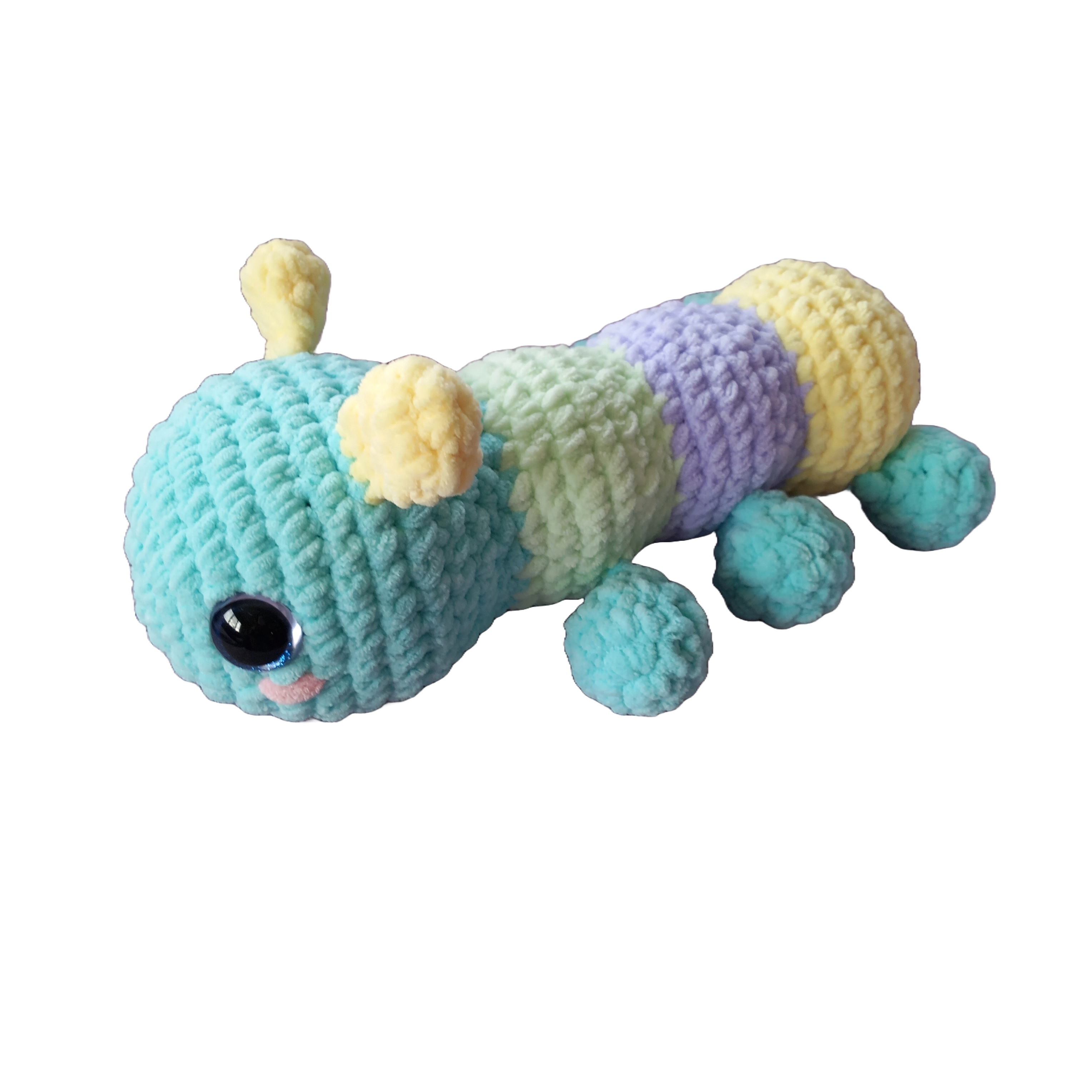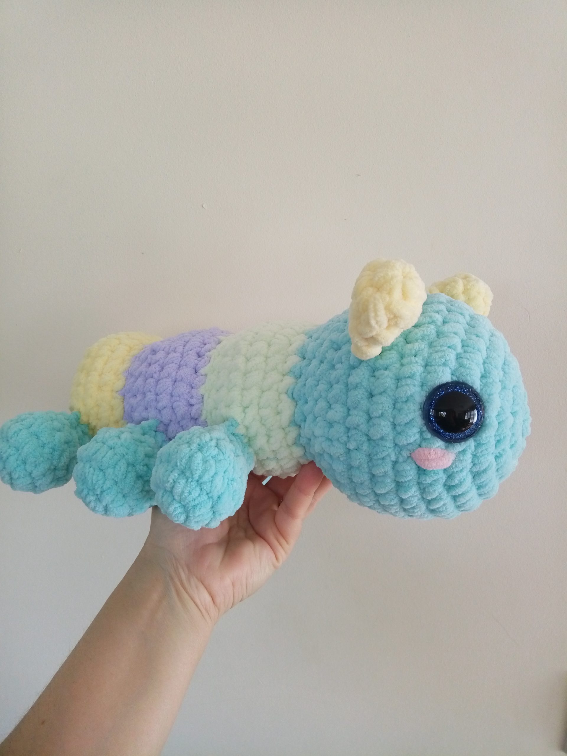 Χειροποίητη πλεκτή πολύχρωμη κάμπια, φτιαγμένη από απαλό βελούδινο νήμα.