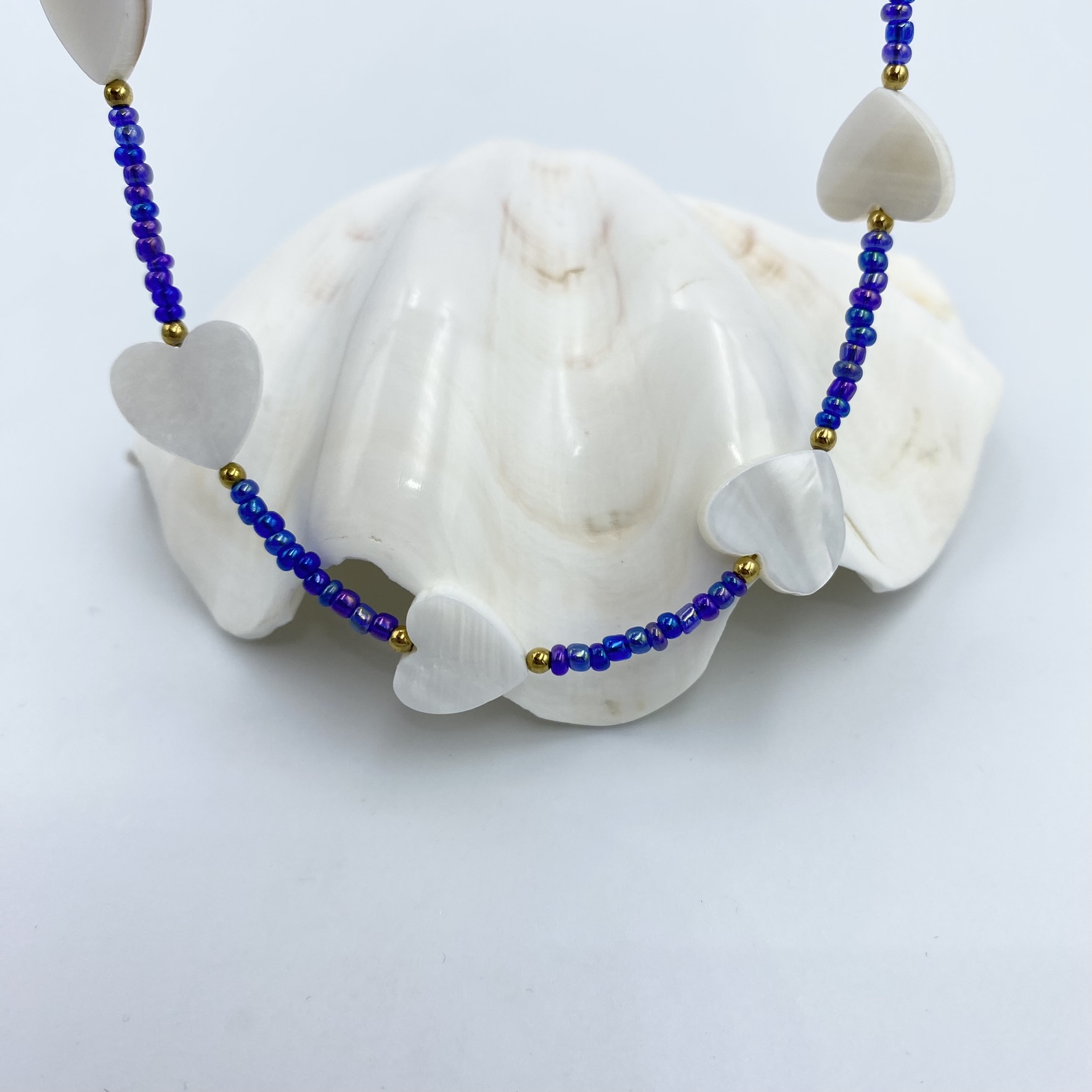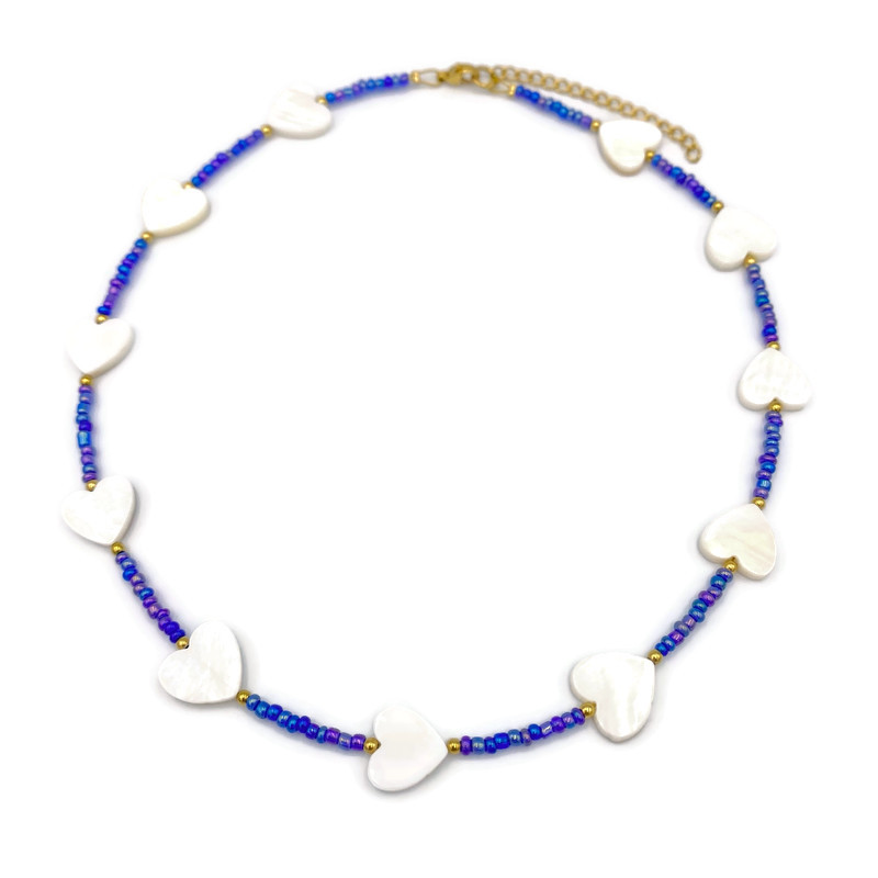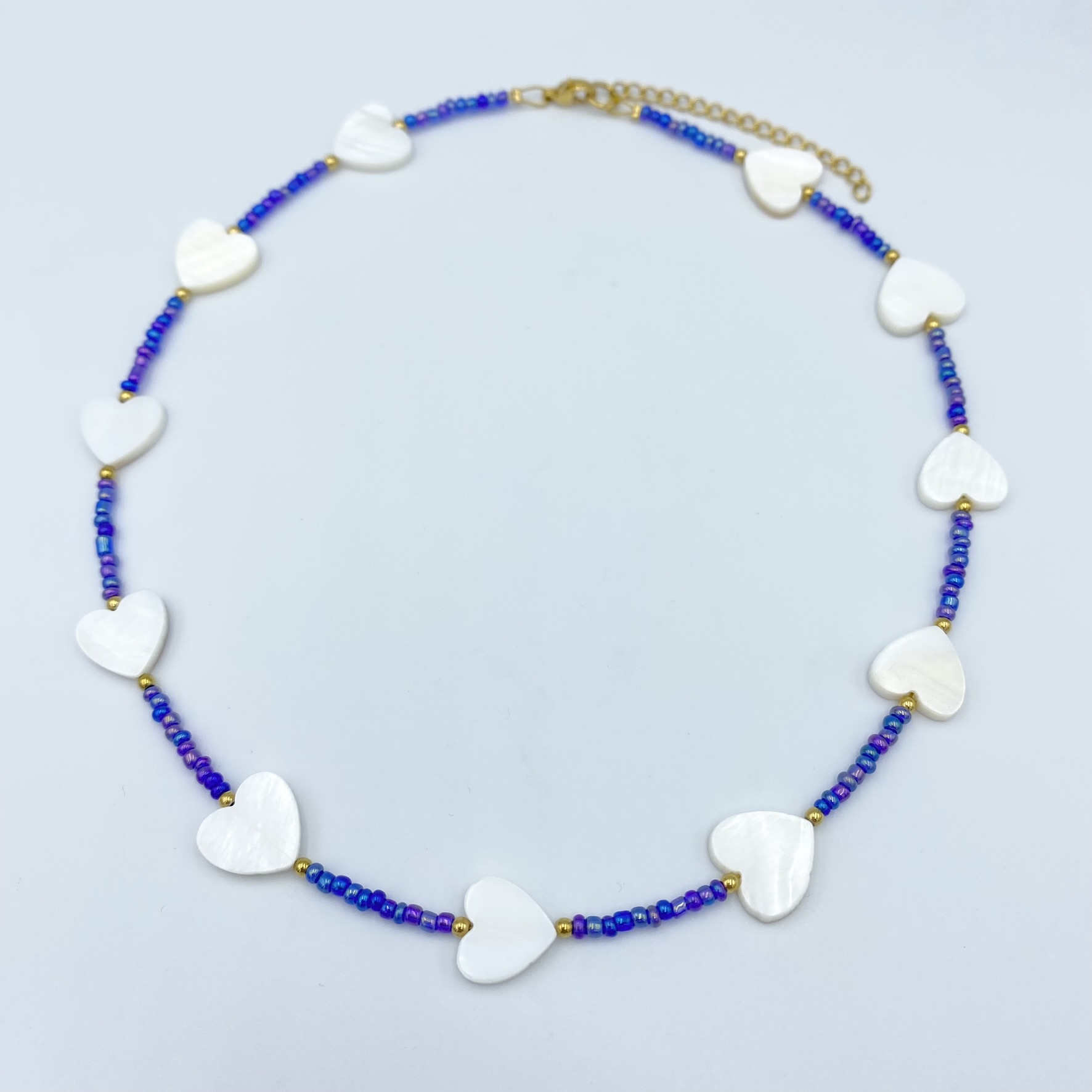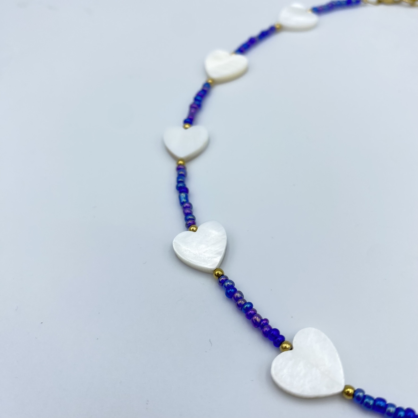 Κολιέ με καρδιές απο φίλντισι, αιματίτη και seed beads.