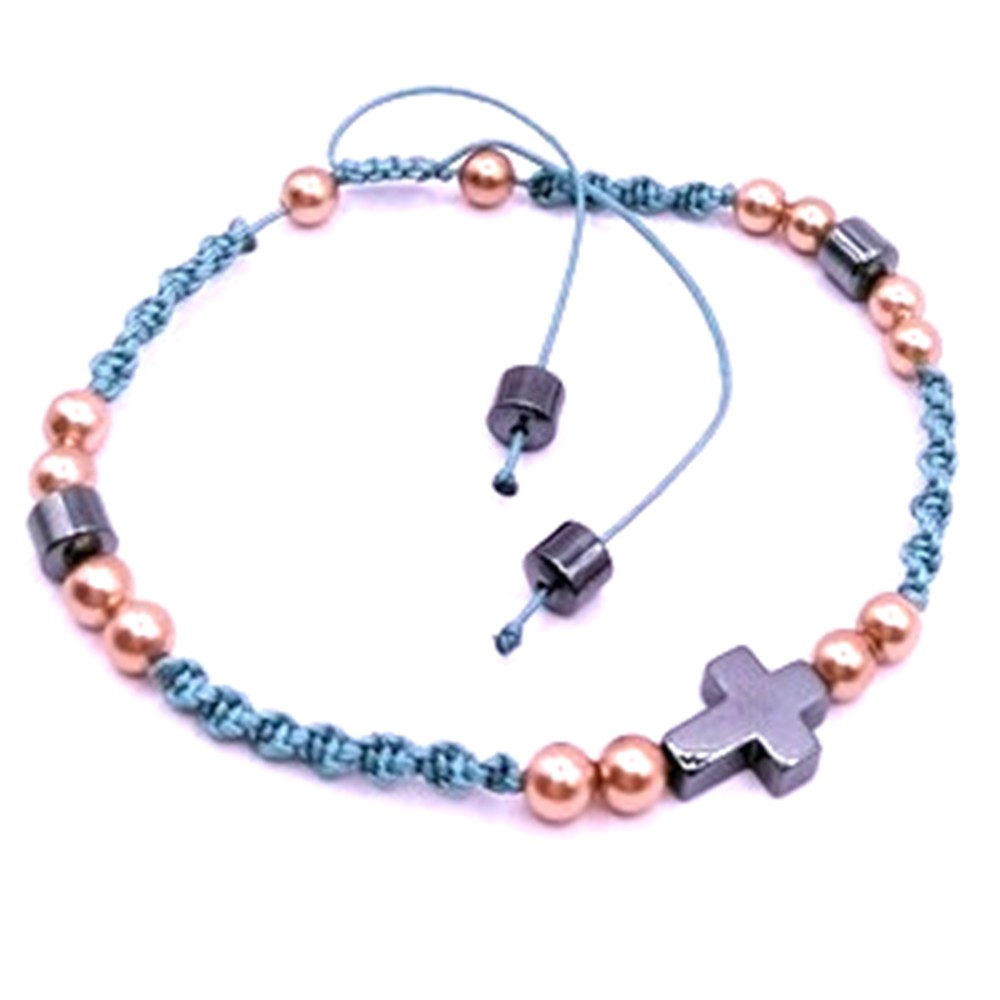 Βραχιόλι με Σταυρό αιματίτη και χάντρες φίλντισι, αιματίτη