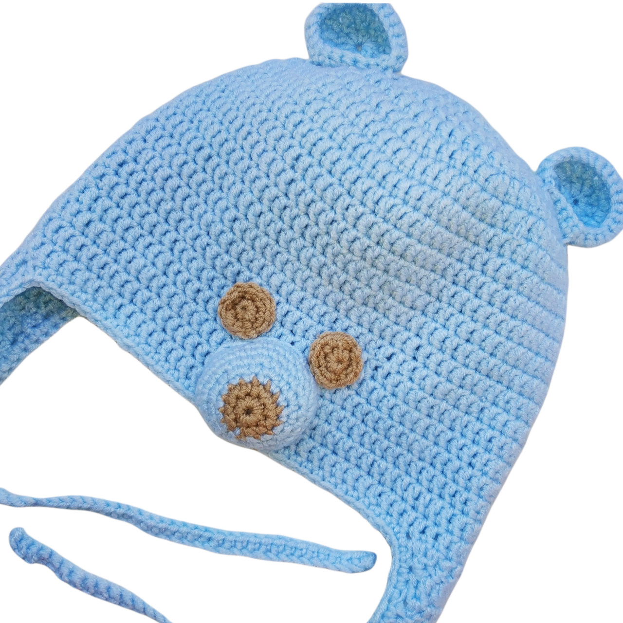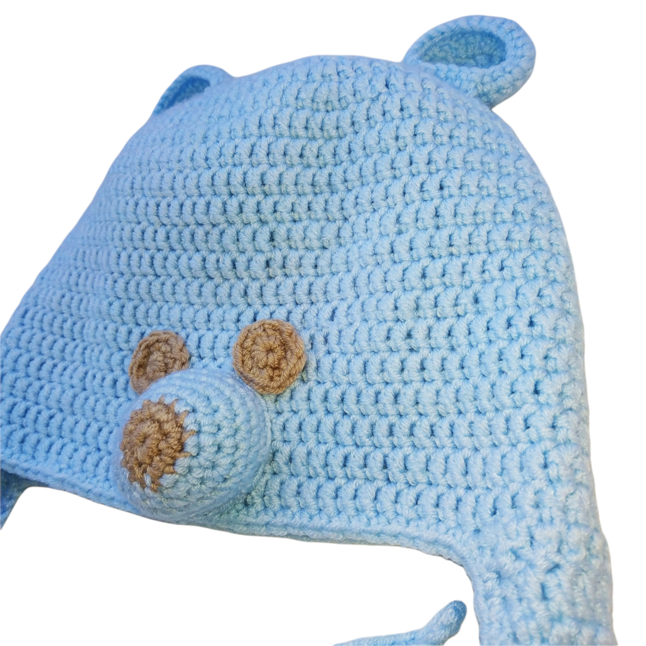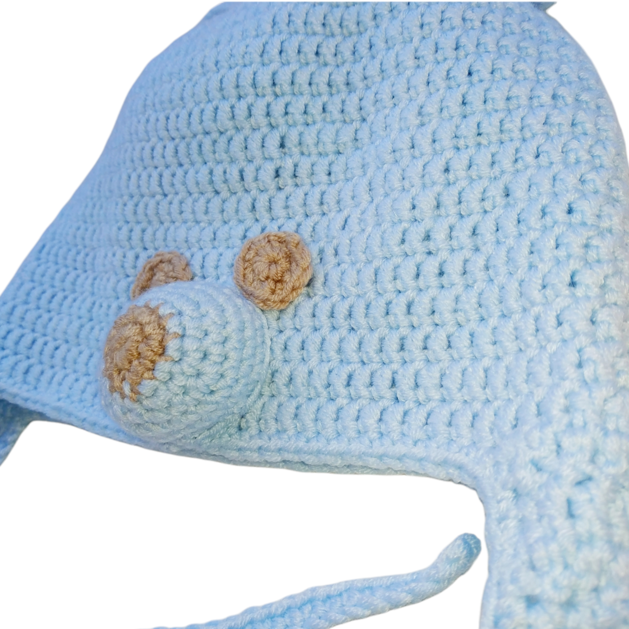 Χειροποίητο πλεκτό σκουφάκι σκυλάκι με βελονάκι σε σιελ χρώμα. Έχει τρισδιάστατη μουσουδίτσα και αυτάκια. Έχει χρησιμοποιηθεί νήμα ειδικό για την ευαίσθητη παιδική επιδερμίδα.