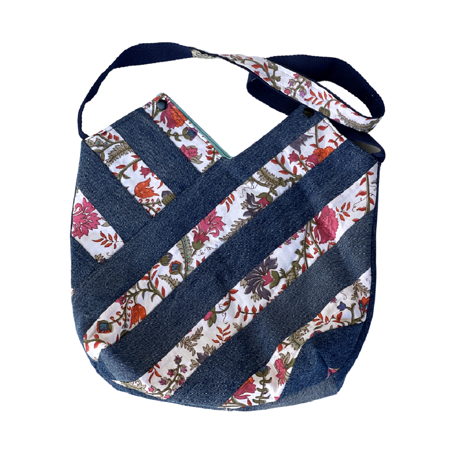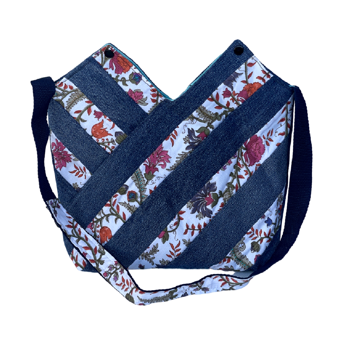 Χειροποίητη τσάντα ώμου τζιν και φλοράλ