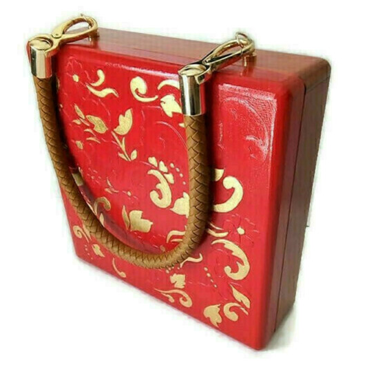 ΞύλινηTσάντα | Κόκκινο-χρυσό-κεραμιδί χρώμα