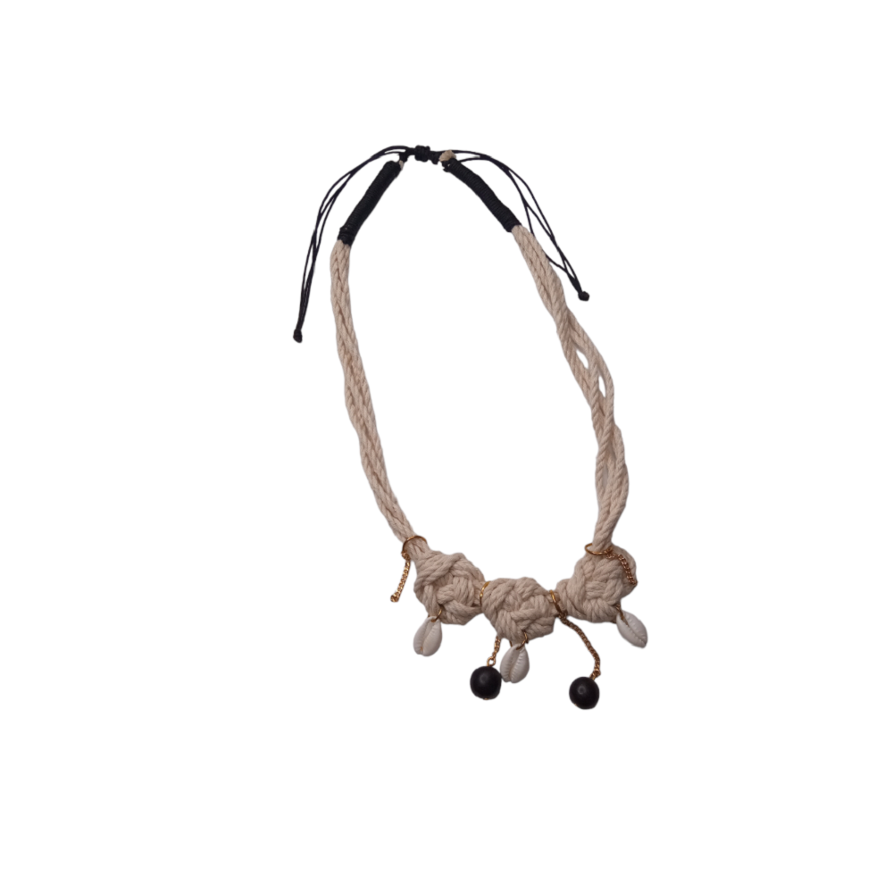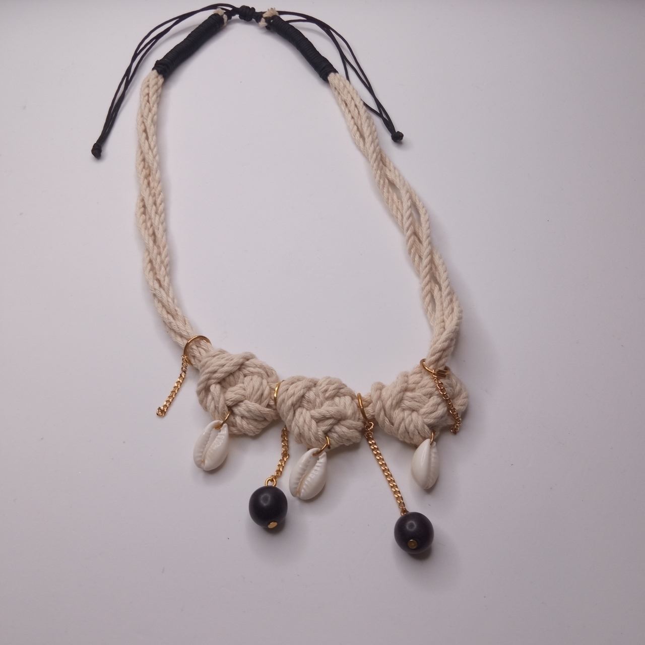 το δέσιμο του είναι μακραμέ και ανοίγει 20μμ. όλο το άνοιγμα του κολιέ είναι 55mm διάμετρος
