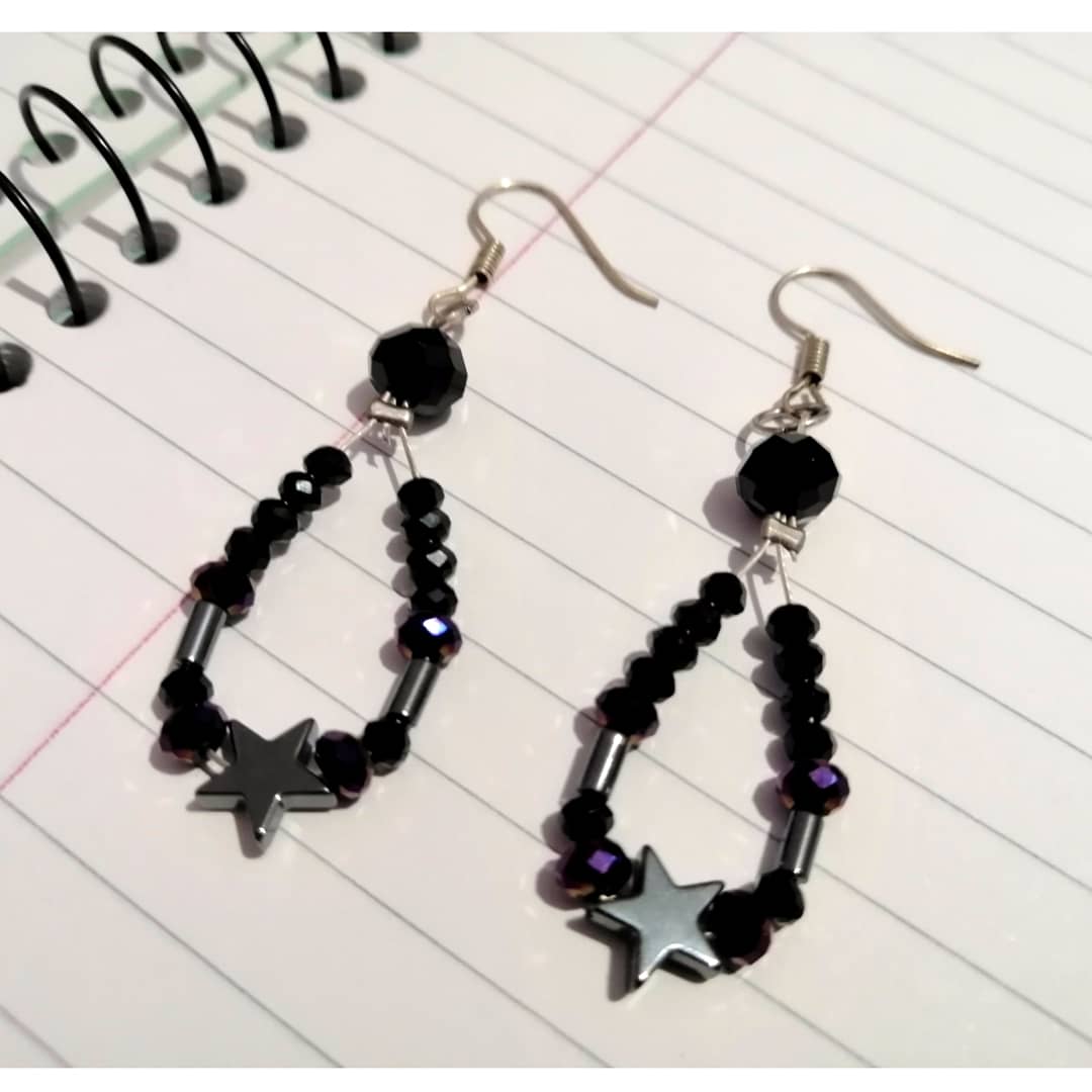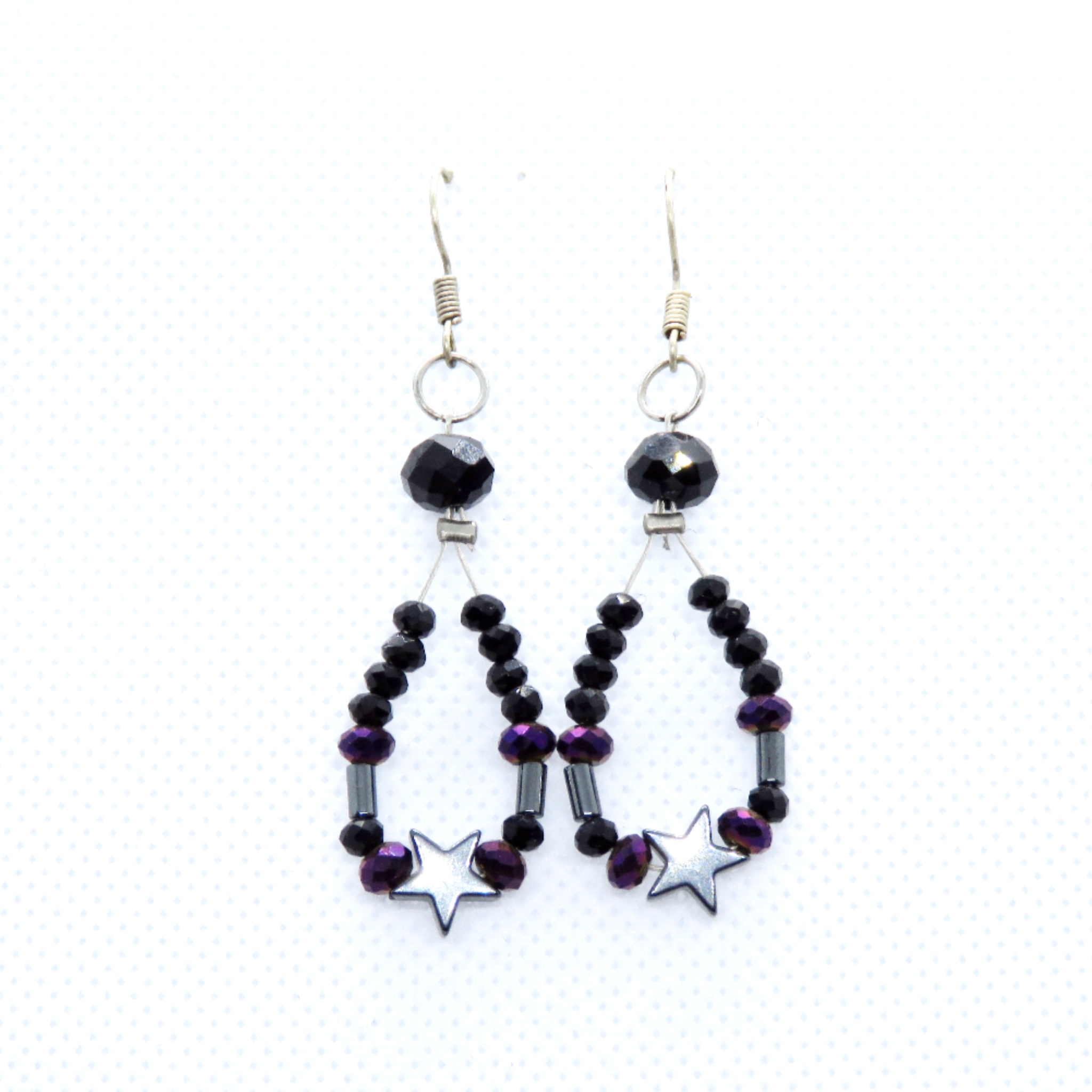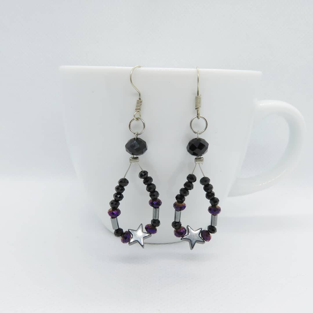 Σκουλαρίκια με κρυσταλλάκια και αιματίτη κρεμαστά σε σχήμα δάκρυ