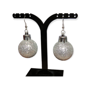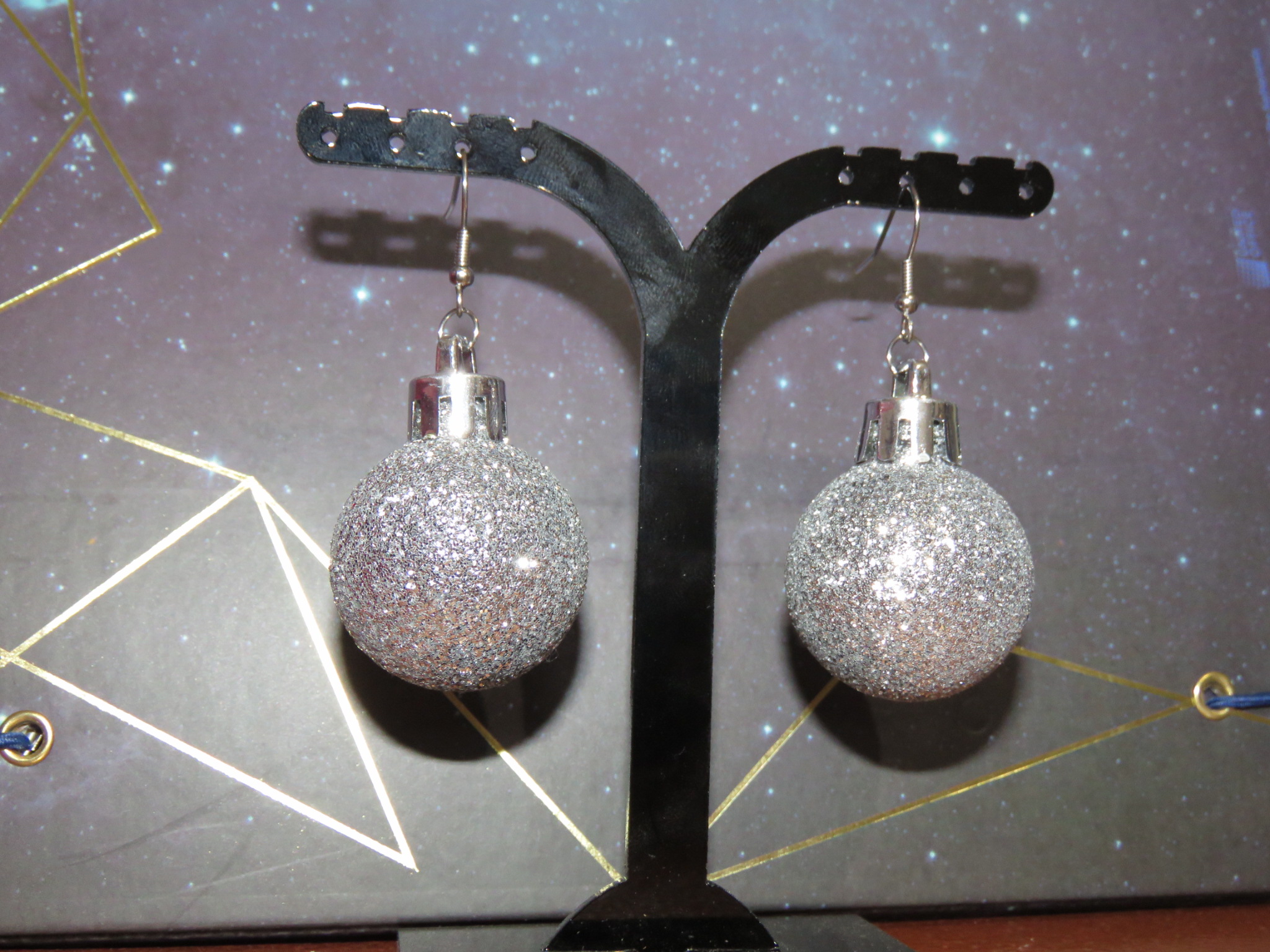 Εντυπωσιακά χριστουγεννιάτικα σκουλαρίκια κρεμαστά με ασημί χριστουγεννιάτικες μπάλες και ατσάλινα γατζάκια