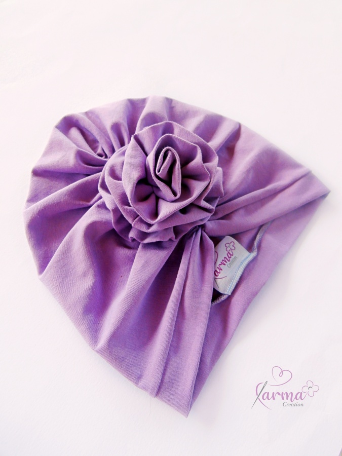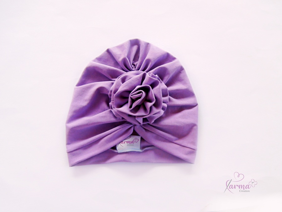 Χειροποίητο τουρμπάνι σε λιλά απόχρωση με λιλά ίδιο λουλούδι.