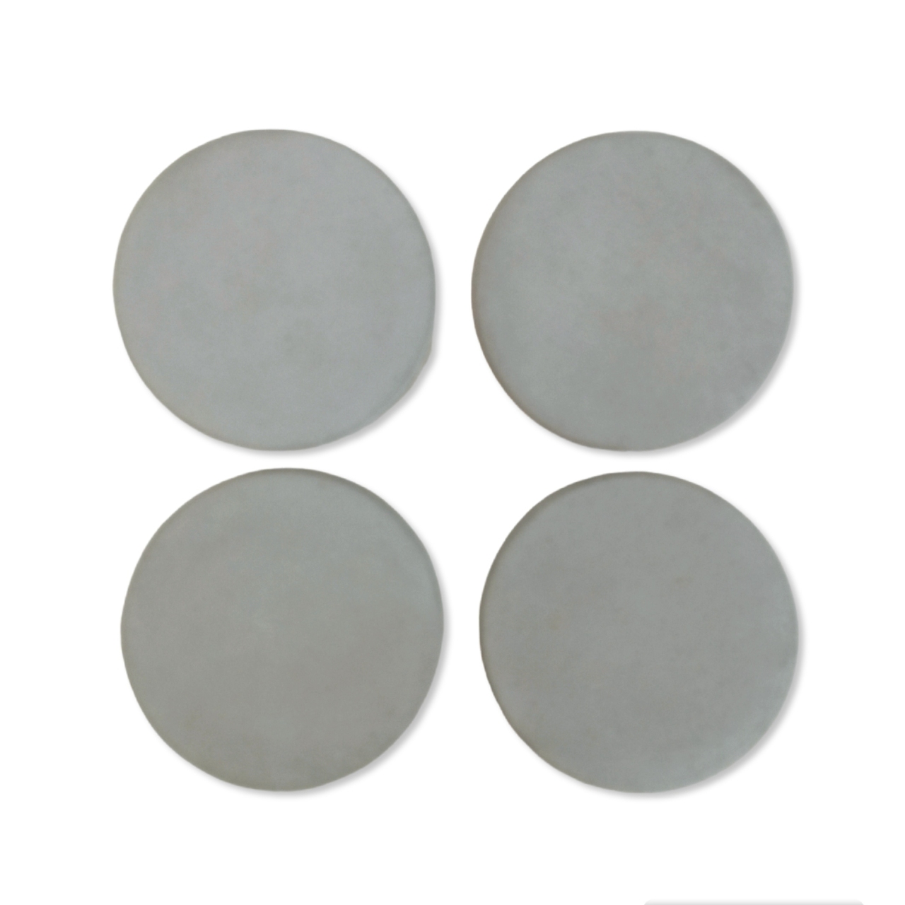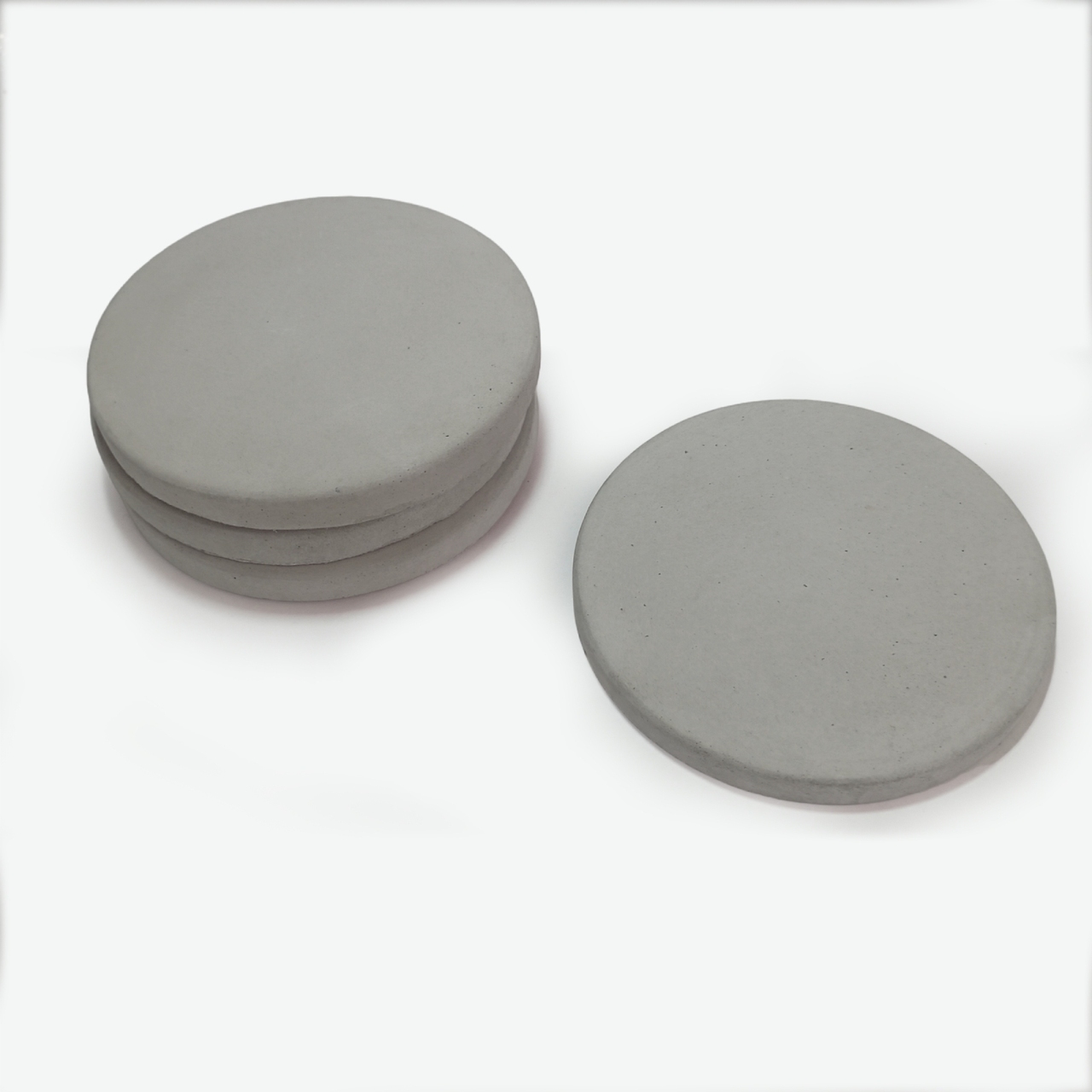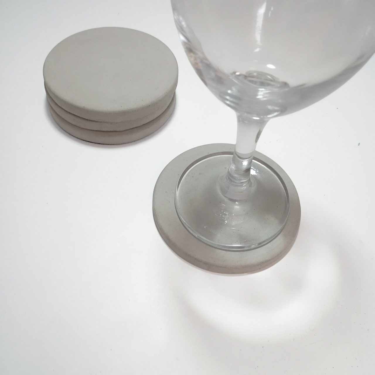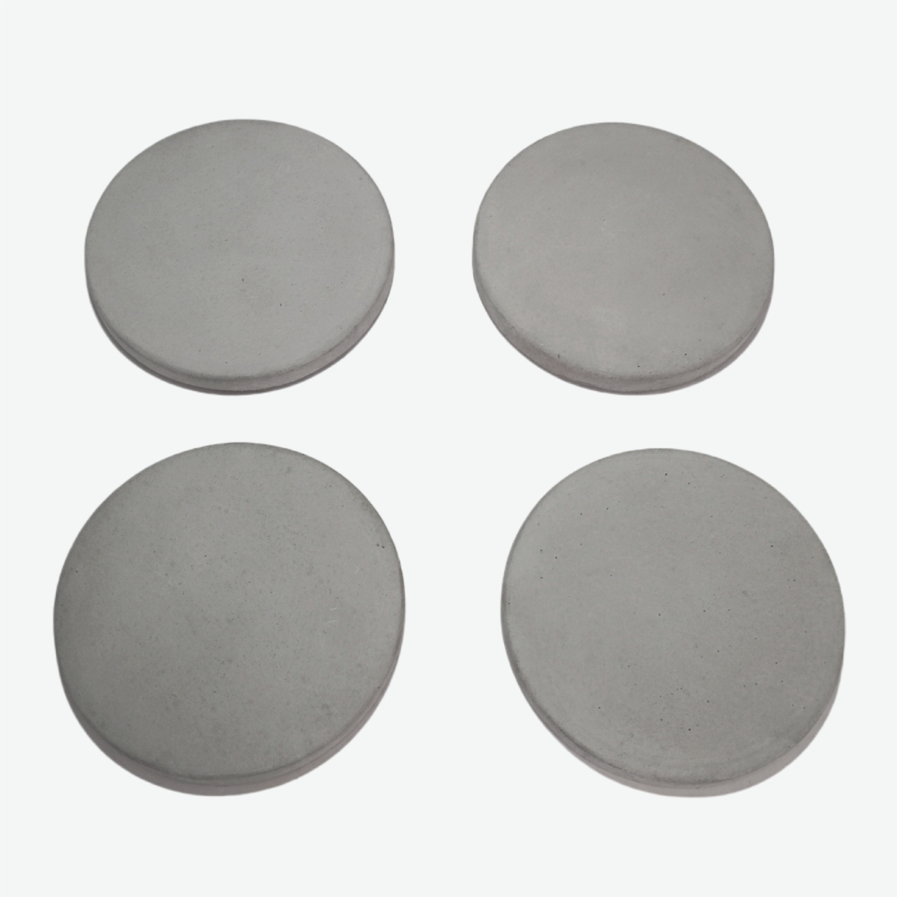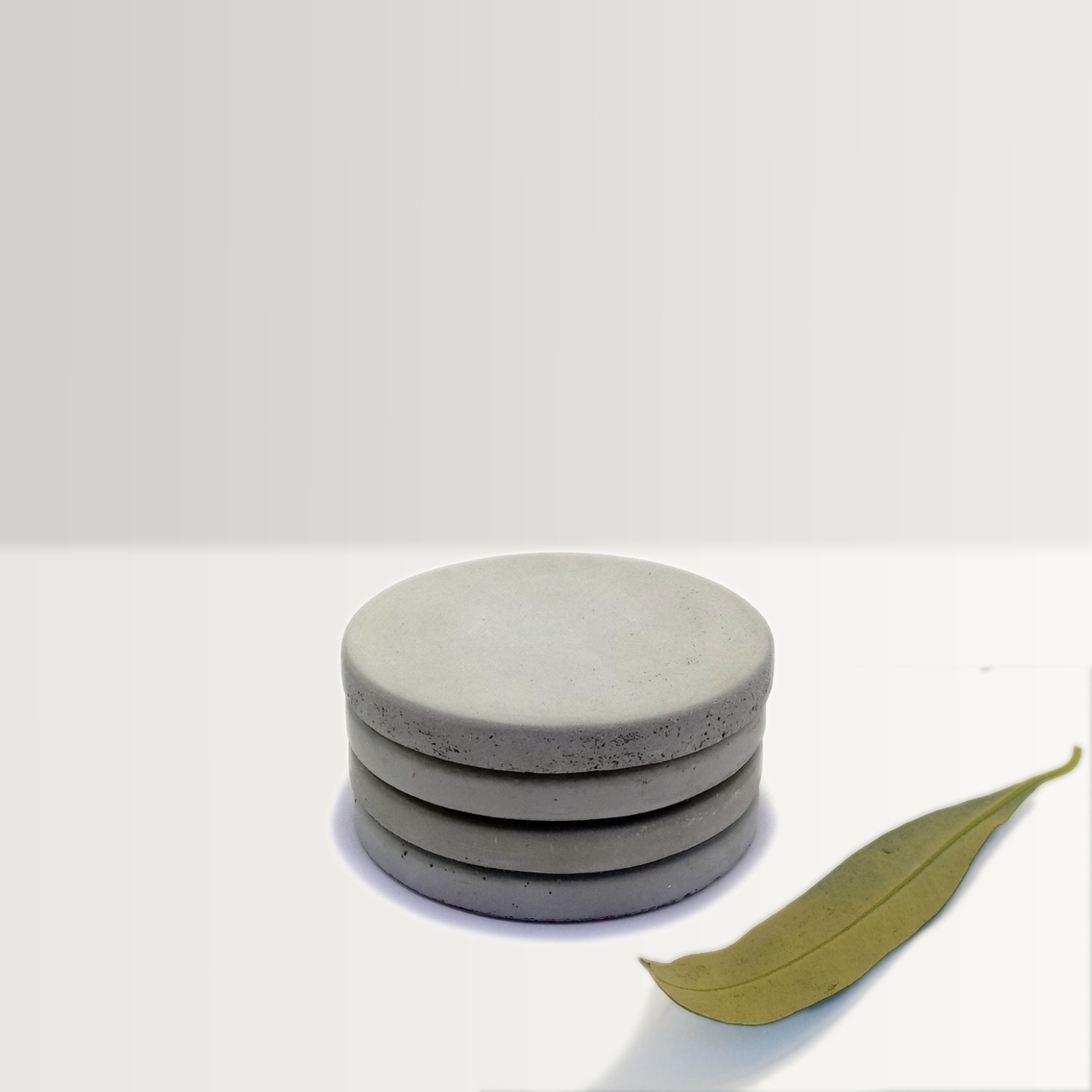Art de la table. Τέσσερα σουβέρ σε στρογγυλό σχήμα φτιαγμένα από λείο σκυρόδεμα σε φυσική απόχρωση. Στα σουβέρ έχει εφαρμοστεί βερνίκι αδιαβροχοποίησης για αποφυγή των ρύπων. Η κάτω πλευρά είναι καλυμμένη από φύλλο φελλού για σταθερότητα και προστασία των επιφανειών. Μοντέρνος και βιομηχανικός σχεδιασμός για μια ξεχωριστή διακόσμηση τραπεζιού. Ιδανικά και για χρήση σε εξωτερικούς χώρους.