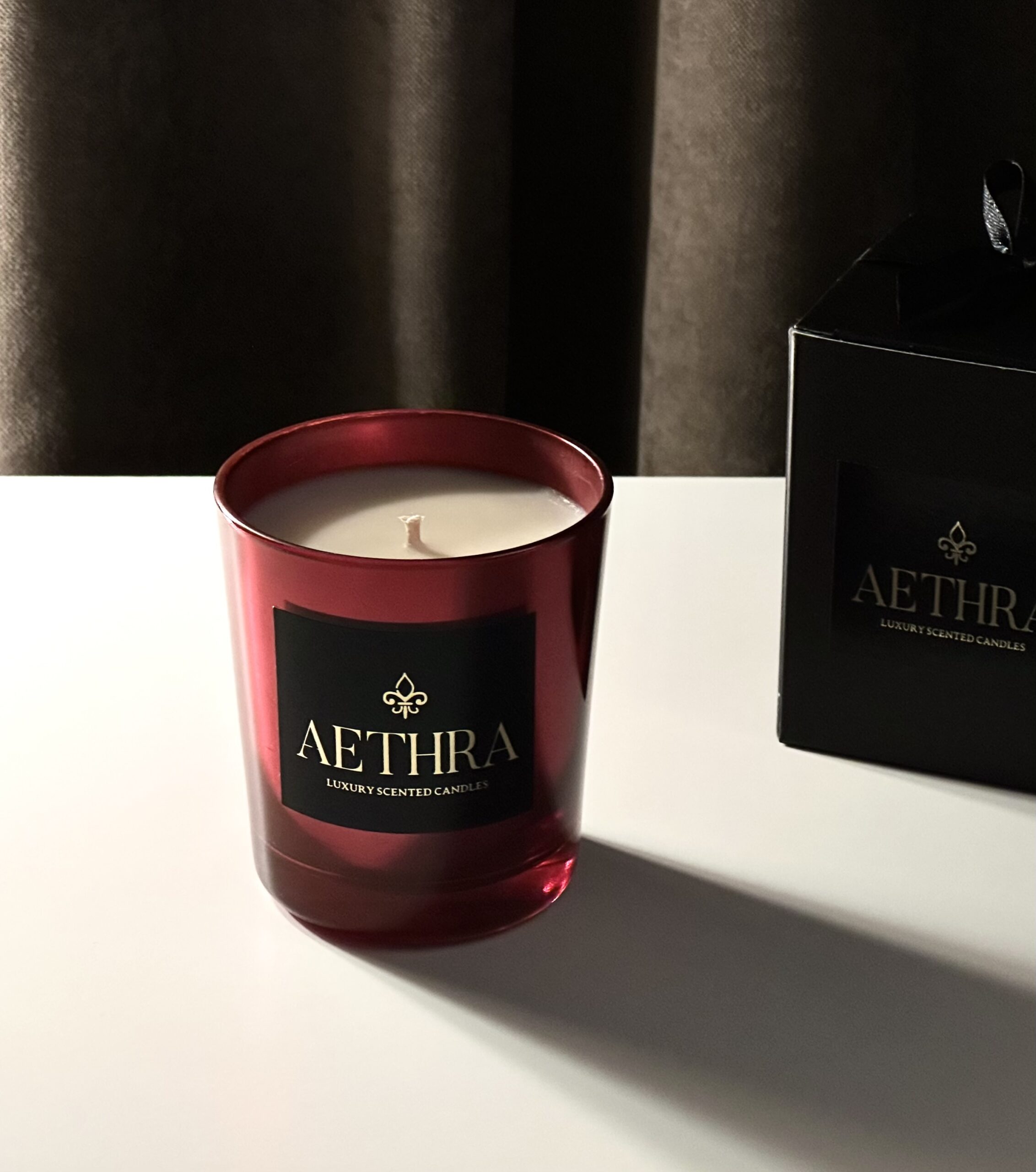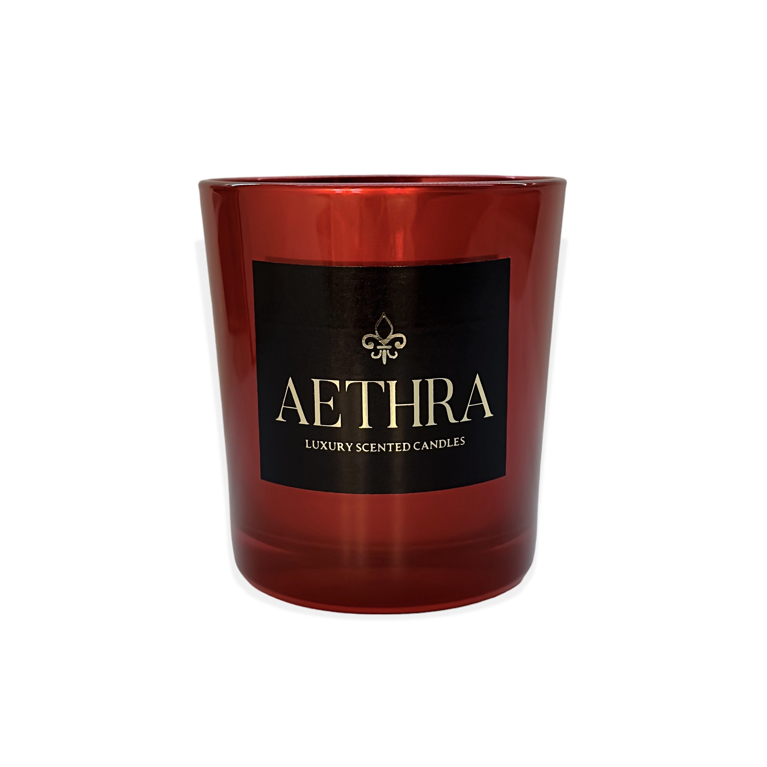 Χειροποίητο πολυτελές αρωματικό κερί από 100% σόγια σε κόκκινο mirror δοχείο με βαμβακερό φυτίλι.