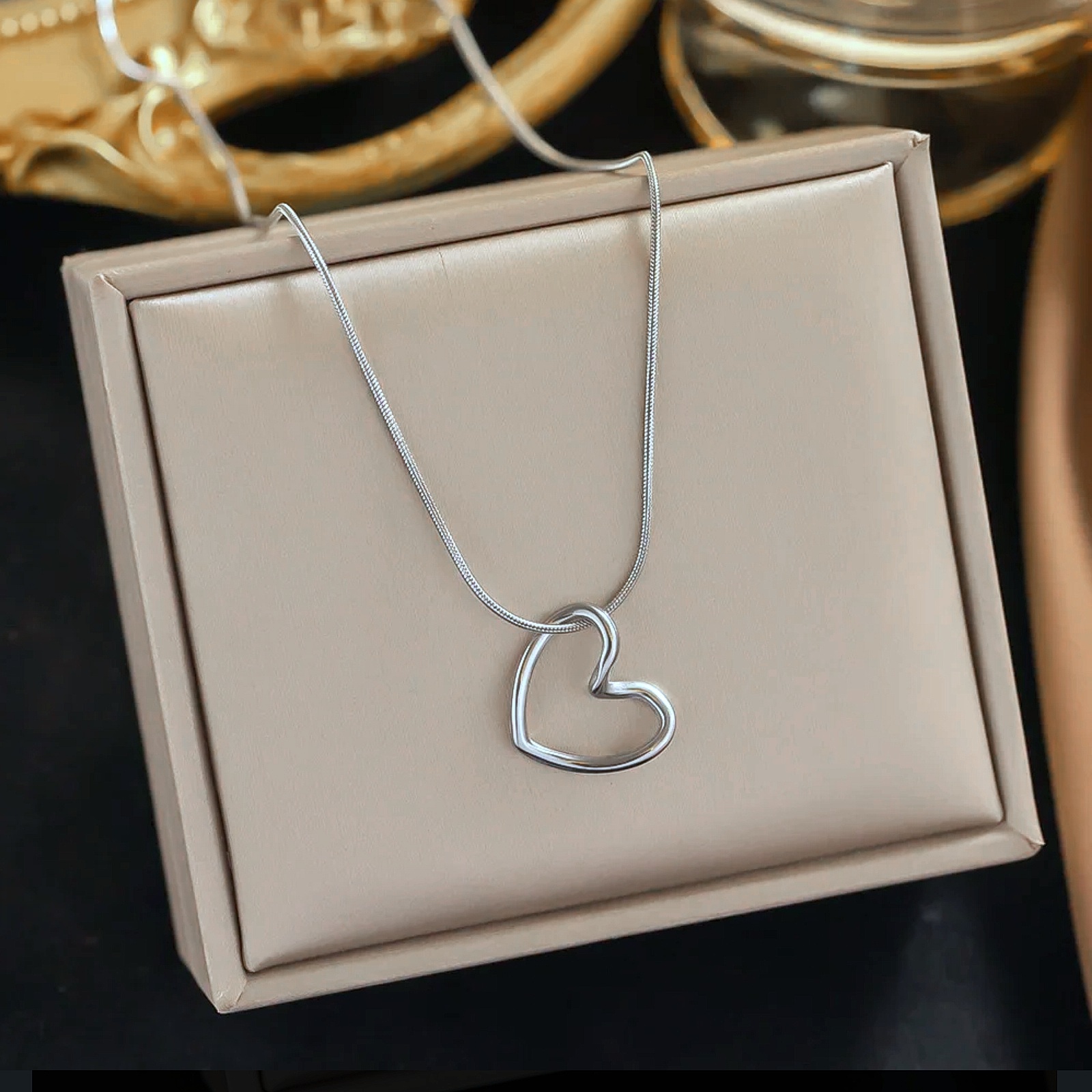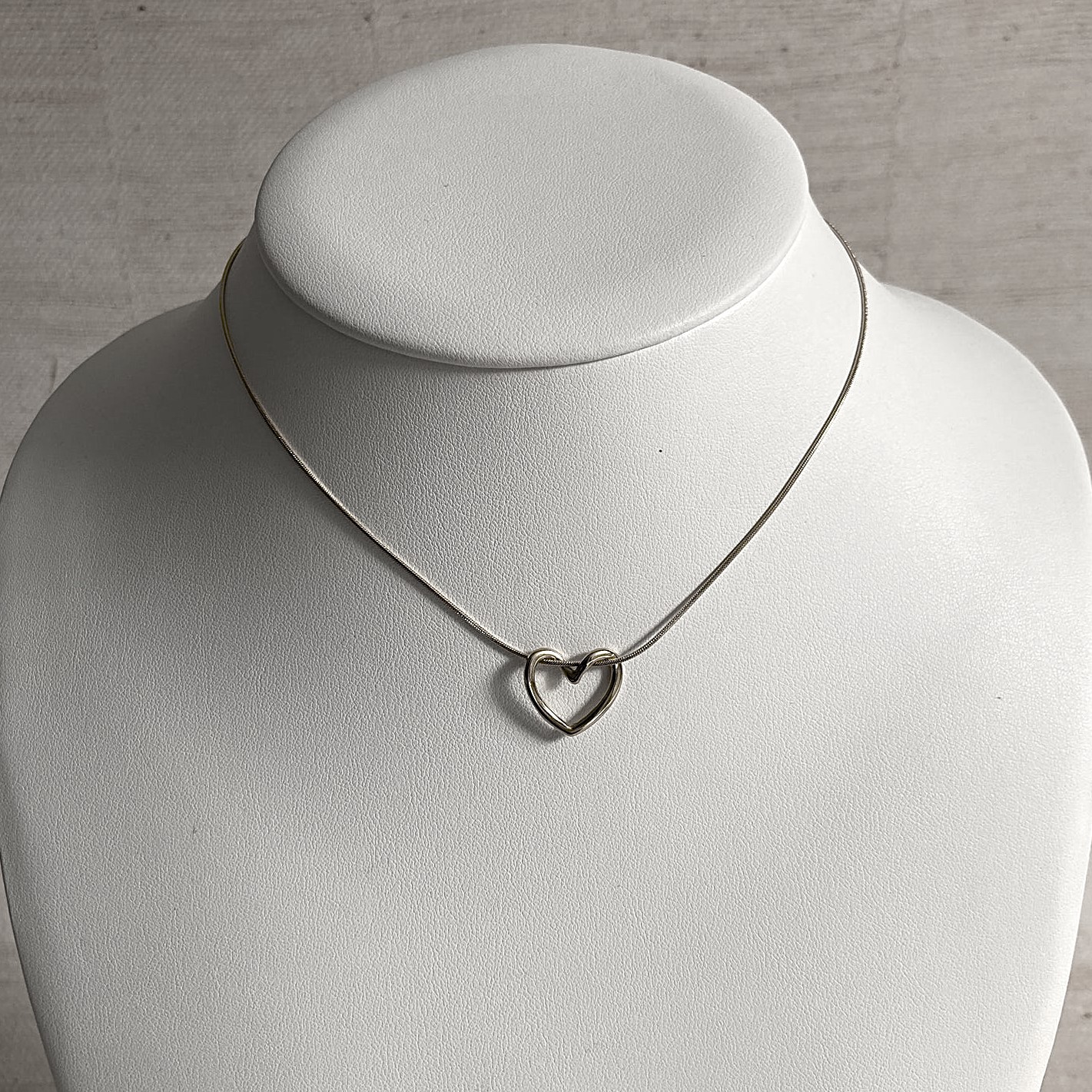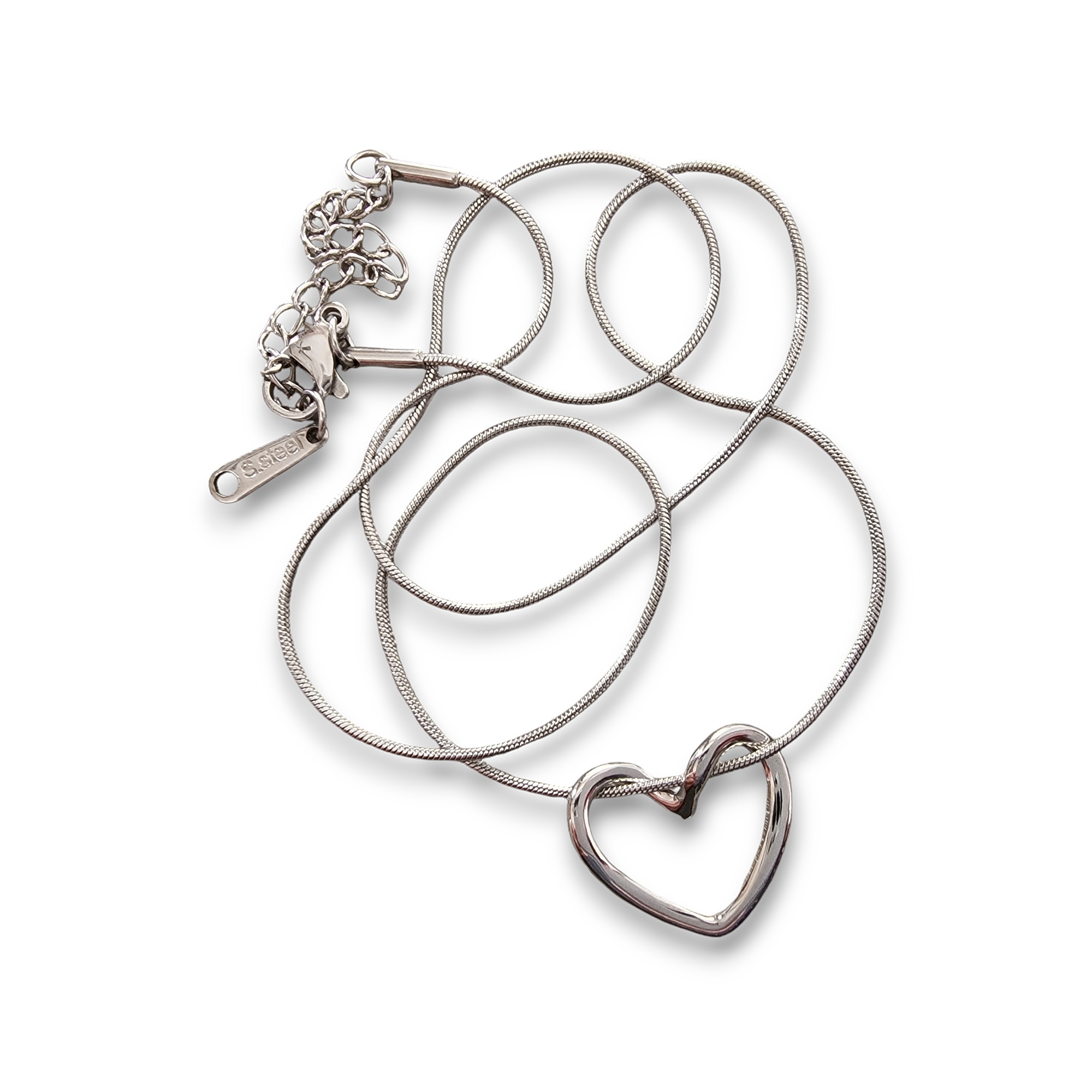 Kολιέ minimal αισθητικής με καρδιά infinity αιωρούμενη περαστή σε ατσάλινη αλυσίδα φίδι.