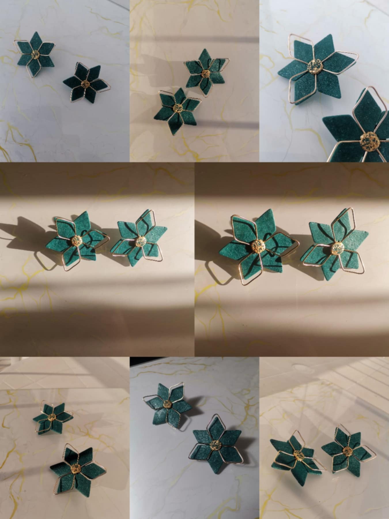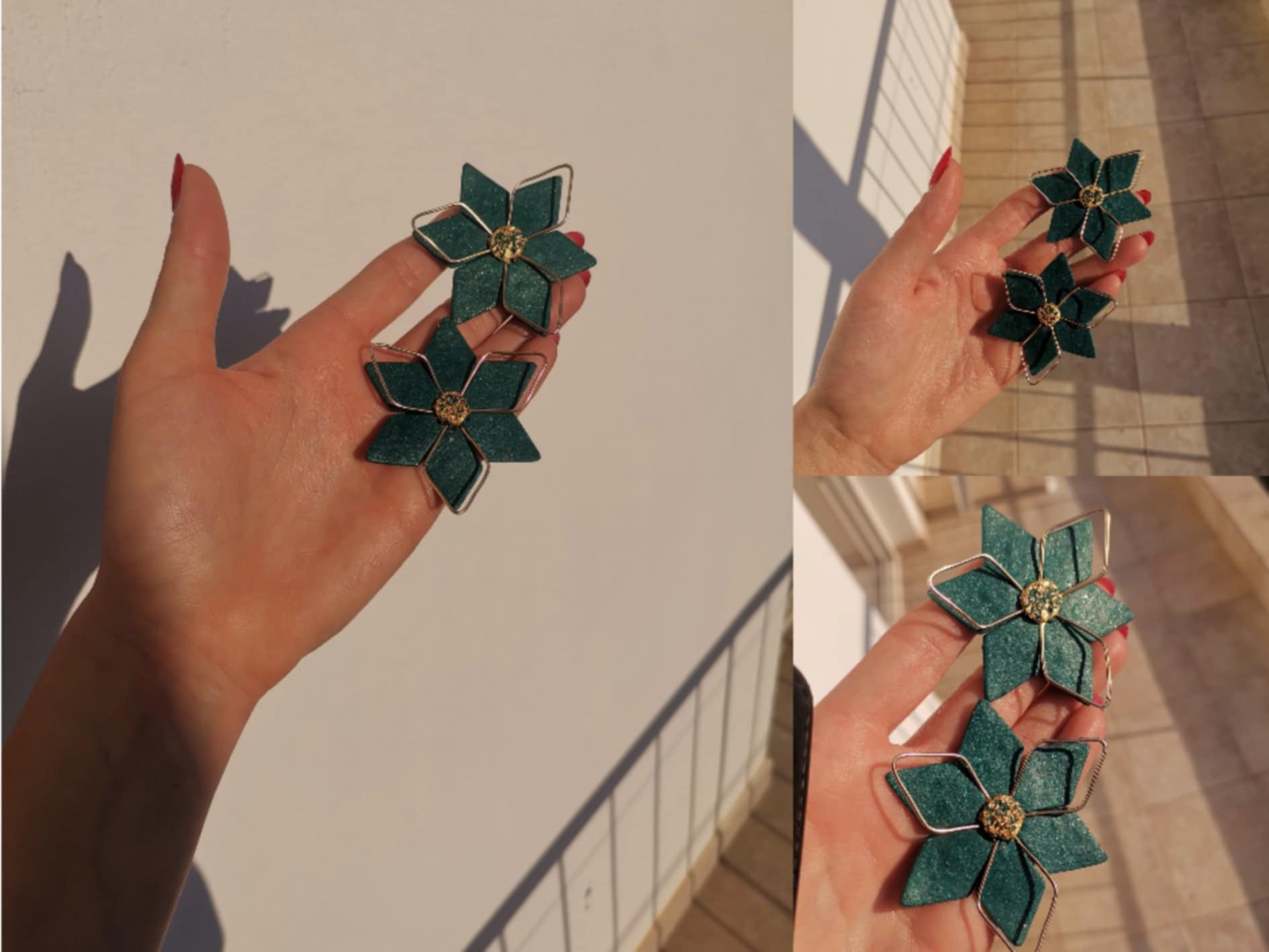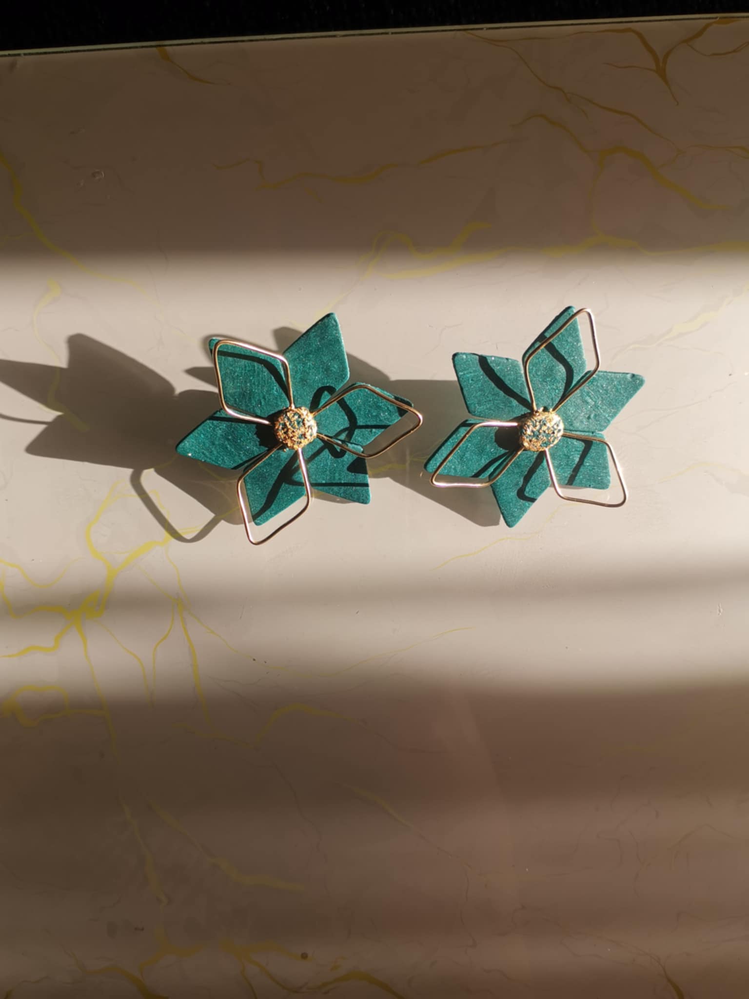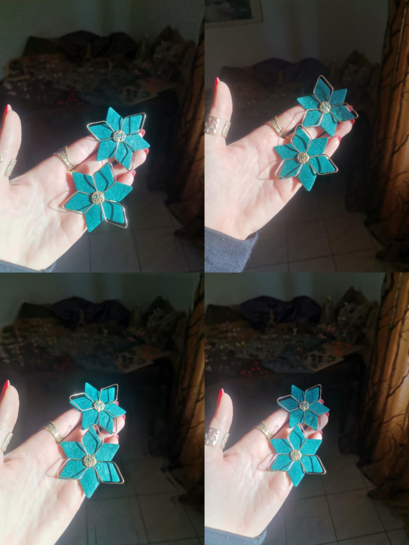 Handmade σκουλαρίκια “starshine” πετρόλ με εφέ χρυσόσκονης