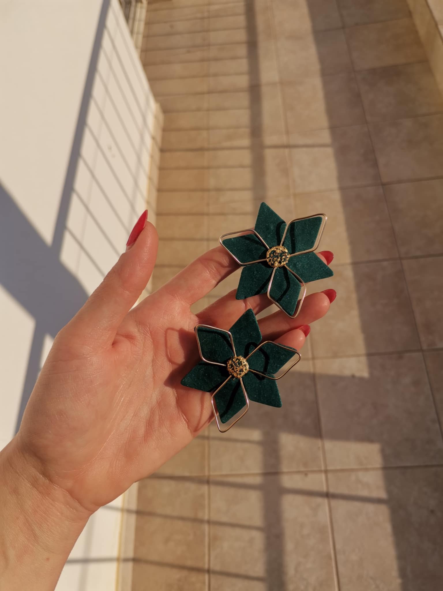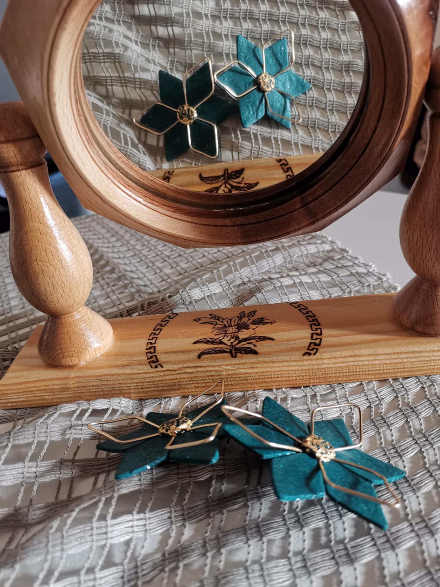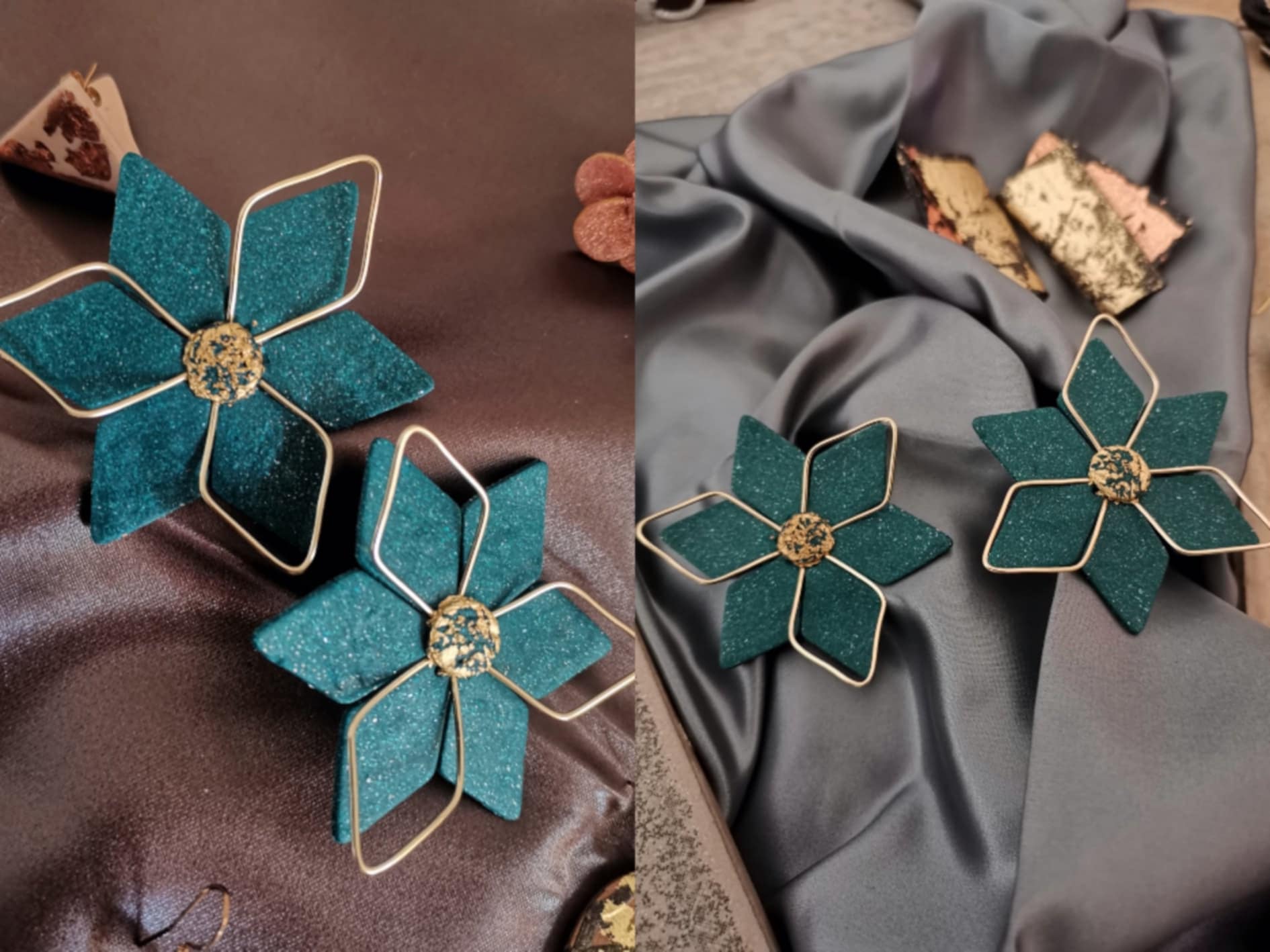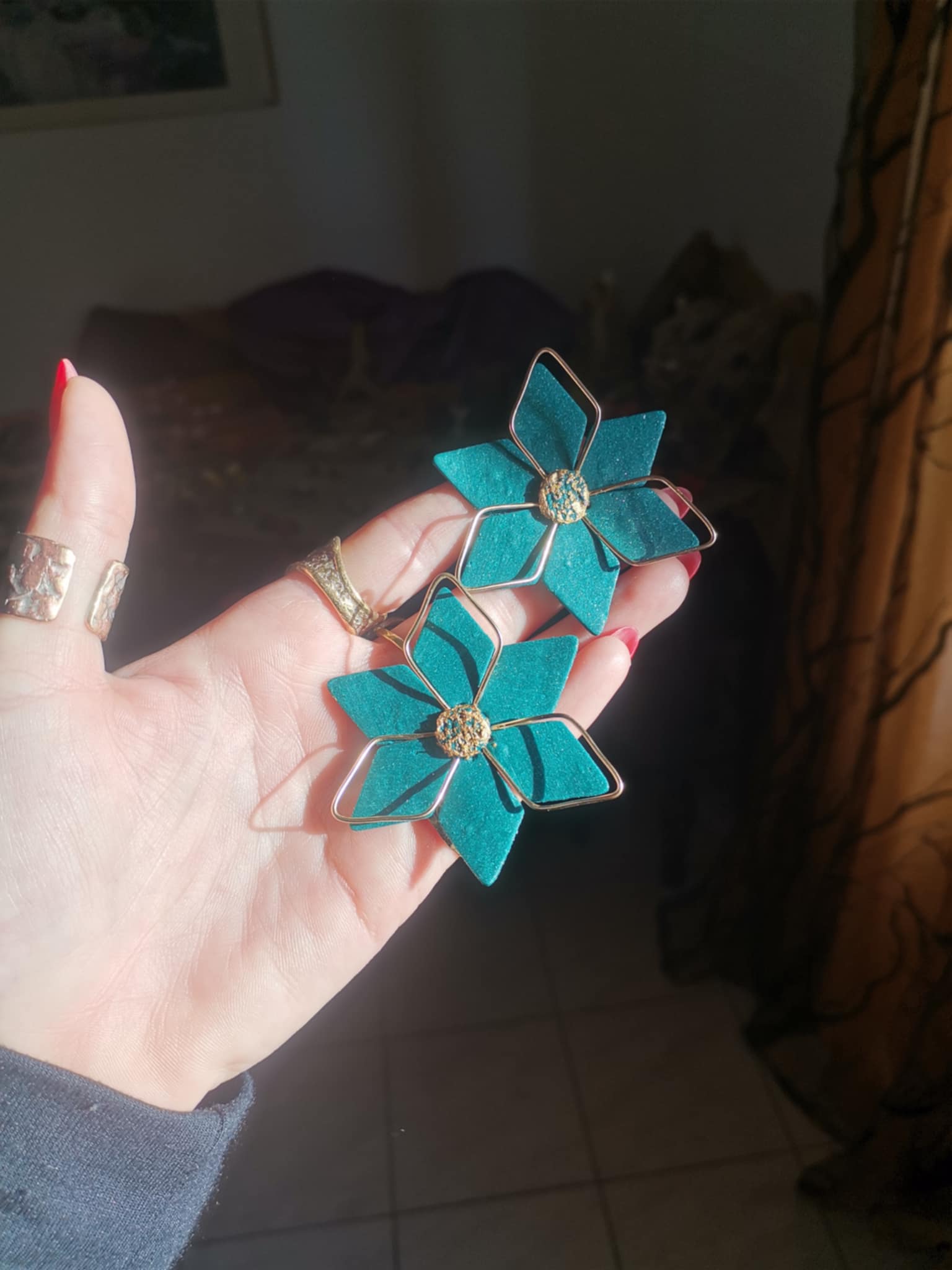 Handmade σκουλαρίκια “starshine” πετρόλ με εφέ χρυσόσκονης