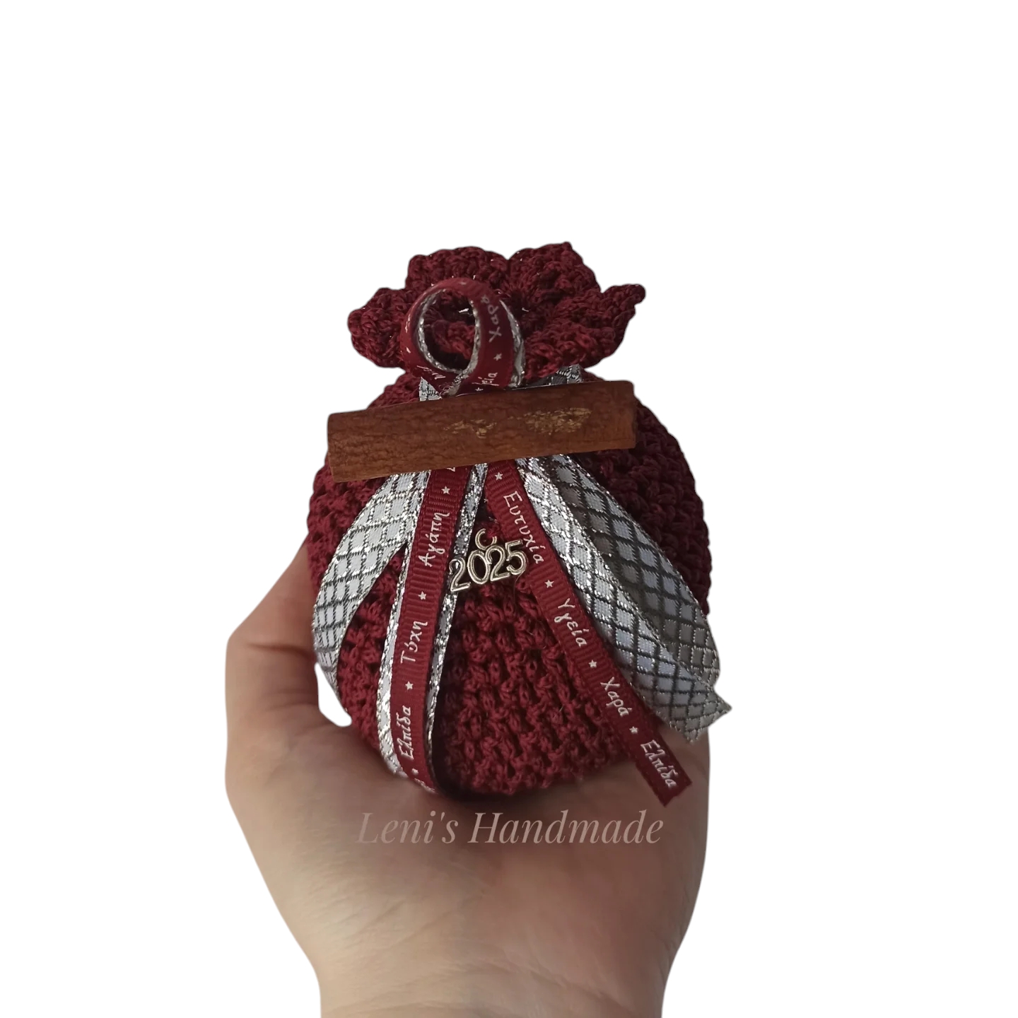 Χειροποίητο πλεκτό γούρι ρόδι σε μπορντό απόχρωση με ασημί λεπτομέρειες. Χάρισε στους αγαπημένους σου ένα μοναδικό γούρι για τη νέα χρονιά που έρχεται. Το ρόδι σαν γούρι συμβολίζει την καλοτυχία και την αφθονία.