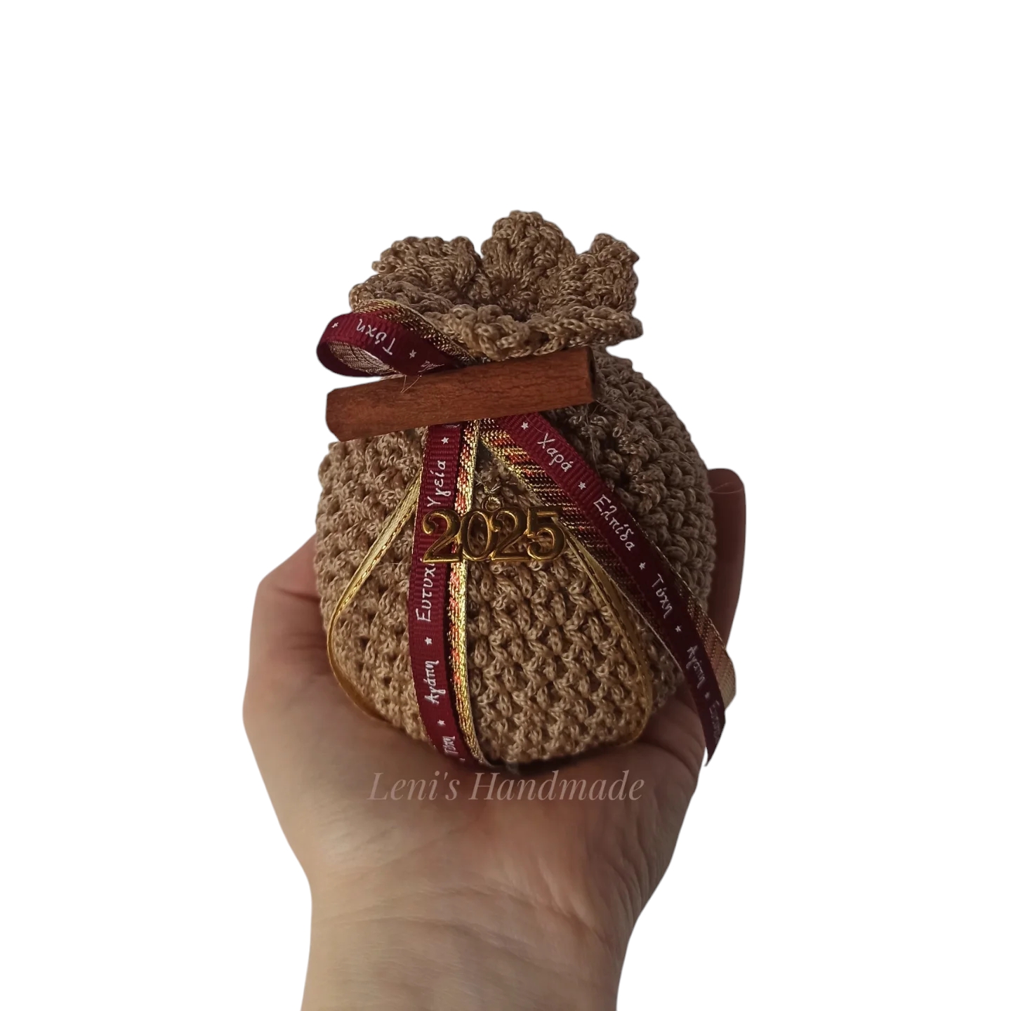 Χειροποίητο πλεκτό γούρι ρόδι σε μπεζ χρώμα με χρυσές λεπτομέρειες. Ήξερες ότι το ρόδι σαν γούρι συμβολίζει την καλοτυχία και την αφθονία; Χάρισε ένα μοναδικό γούρι στους αγαπημένους σου.