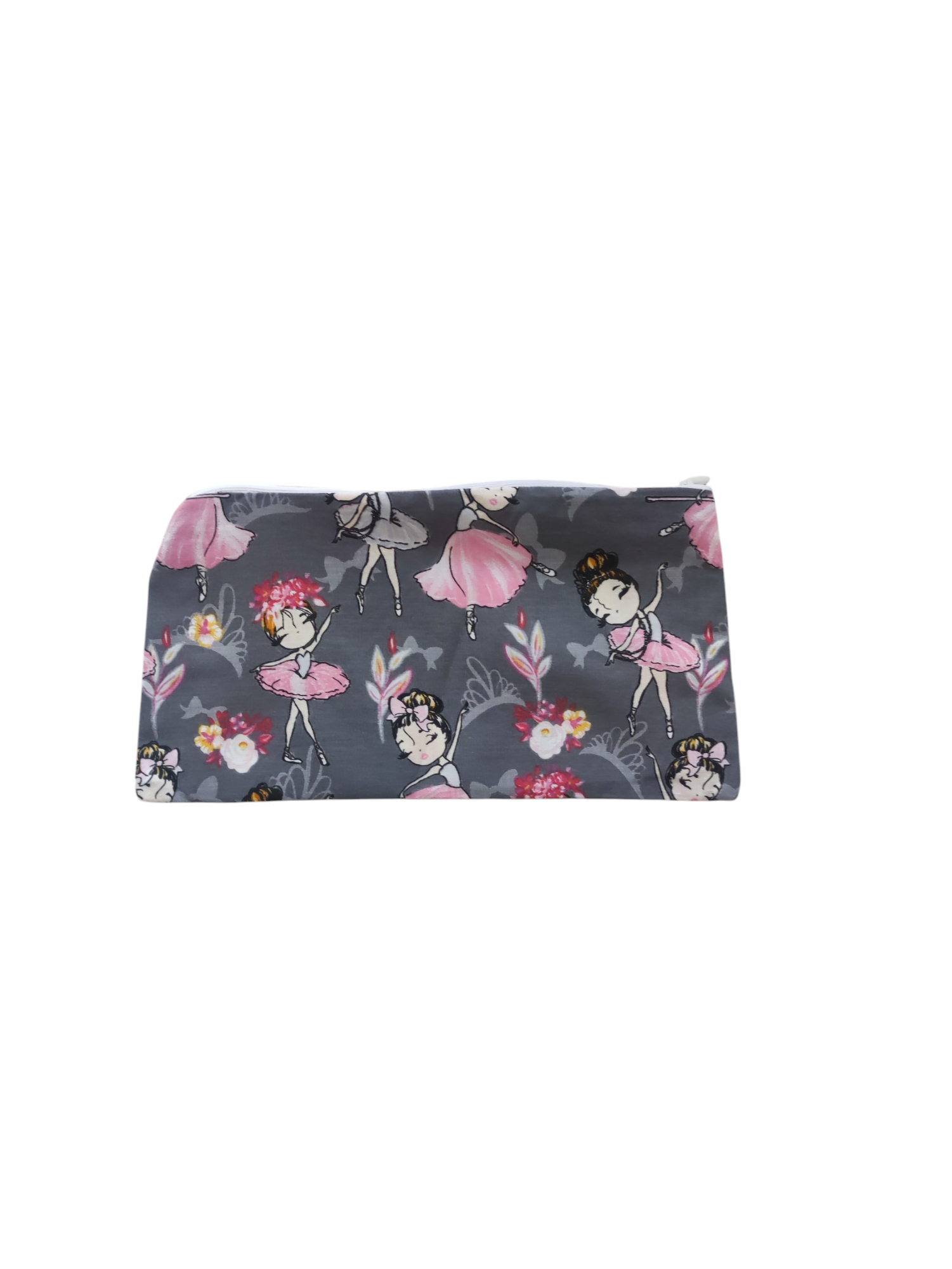 Χειροποίητο τσαντάκι παιδικό με μπαλαρίνες, εσωτερική επένδυση βαμβακερό ύφασμα, κουμπώνει με φερμουάρ.