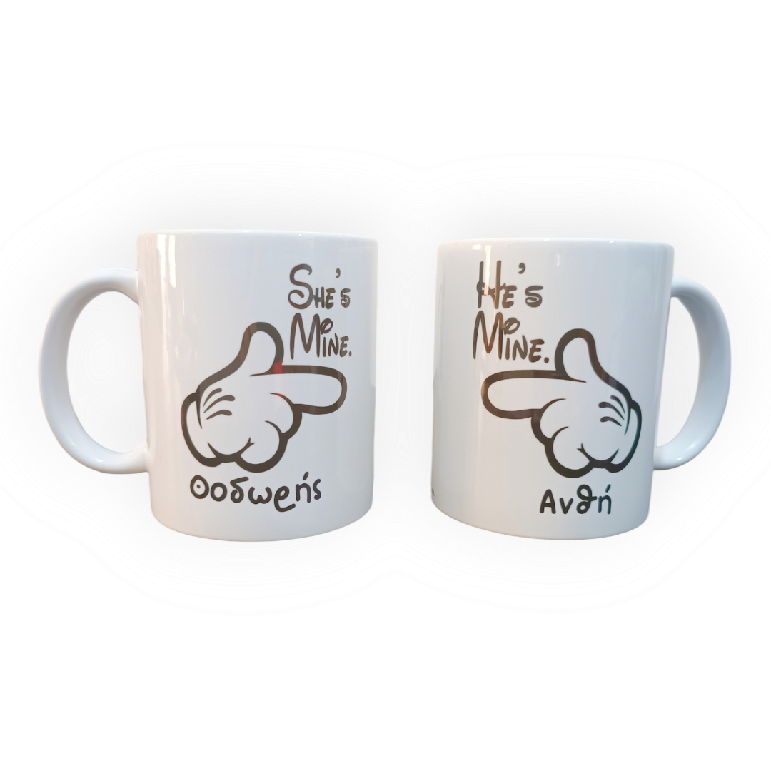 Σετ από 2 χειροποίητες προσωποποιημένες κεραμικές κούπες his hers για ζευγάρια