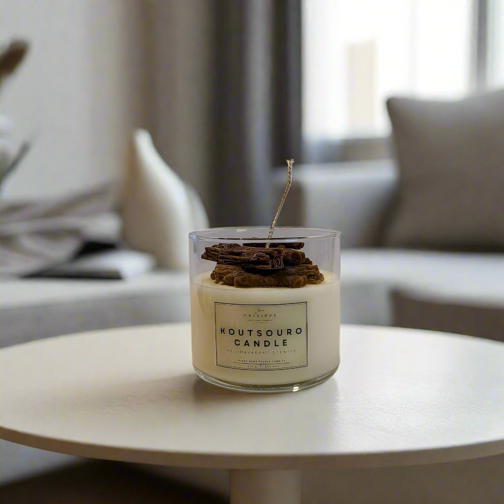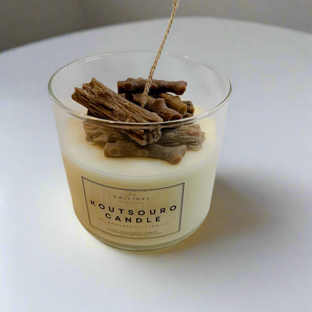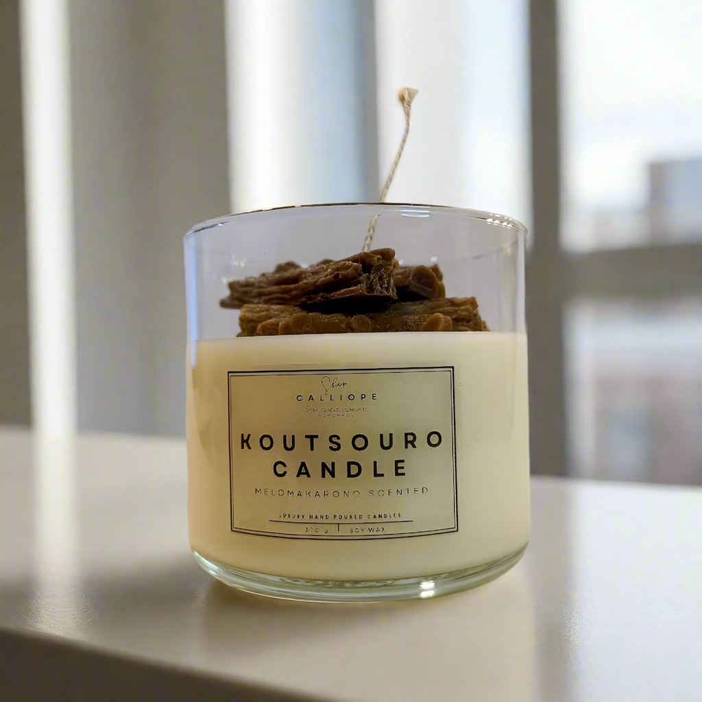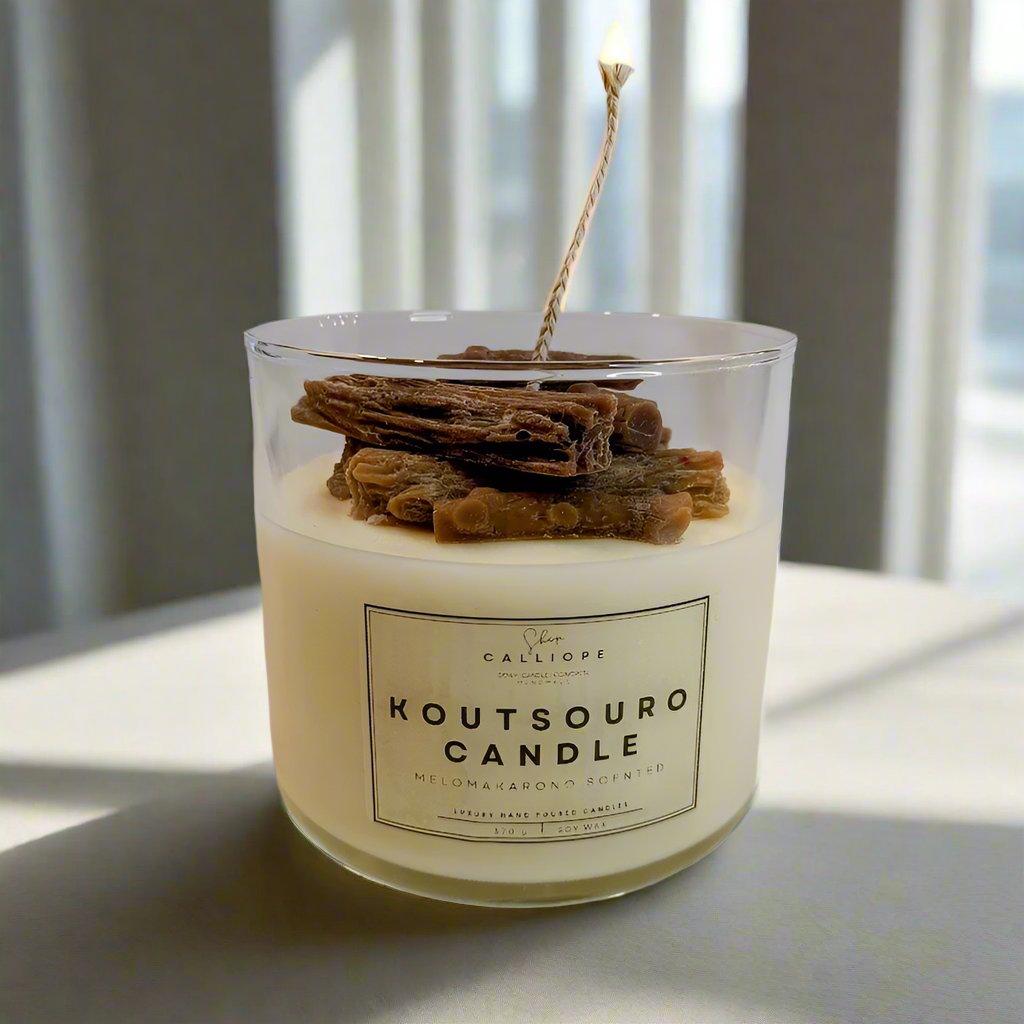 Κάντε κάθε στιγμή ξεχωριστή, δίνοντας νέο αέρα στον χώρο σας με ένα χειροποίητο κερί σόγιας με άρωμα Μελομακάρονο.