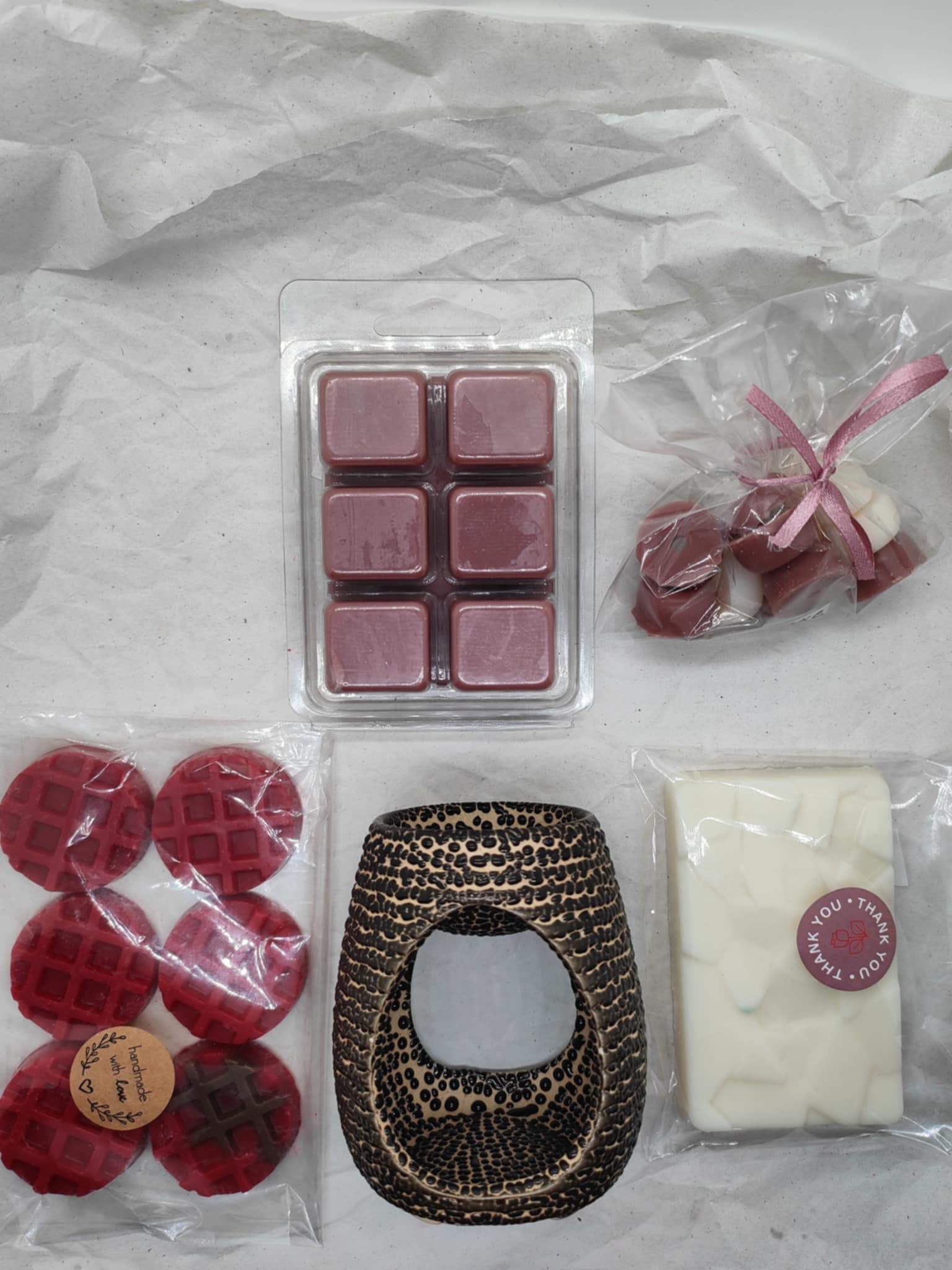 Σετ με καυστήρα για wax melts, γεμάτο με κεριά που έχει ατμόσφαιρα γλυκιάς απόλαυσης και υπέροχα αρώματα:
