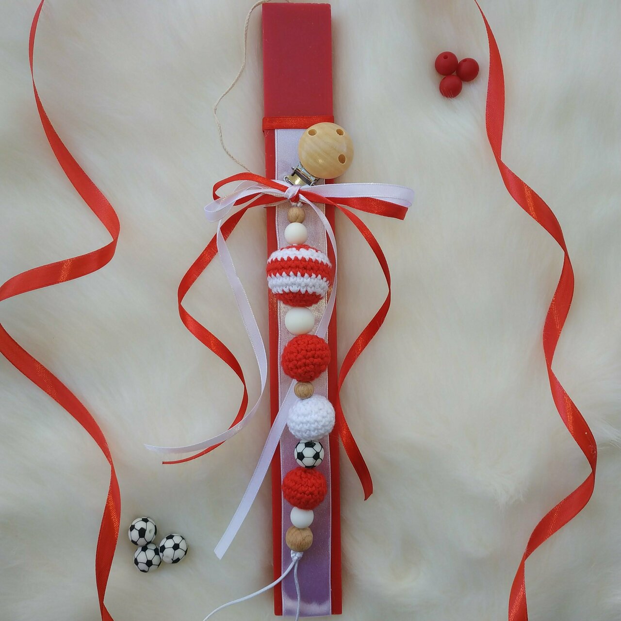 Κόκκινη λαμπάδα με κλιπ πιπίλας Ολυμπιακός