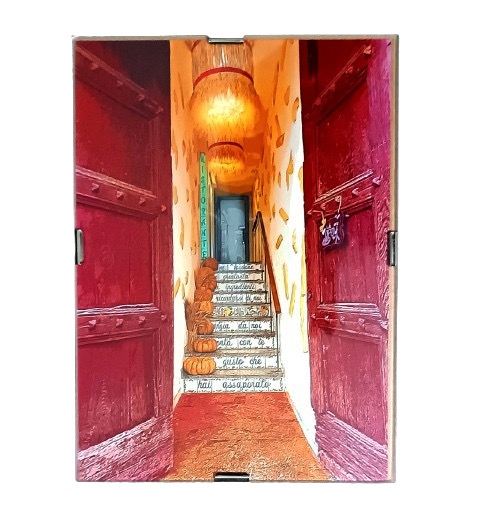 Καδράκι με σχέδιο εκτυπωμένο σε φωτογραφικό χαρτί 13×18 cm. Εικονίζει μια είσοδο εστιατορίου στην Σικελία. To καδράκι έχει τζάμι και γαντζάκια. Κρέμεται εύκολα σε καρφί στον τοίχο σας.