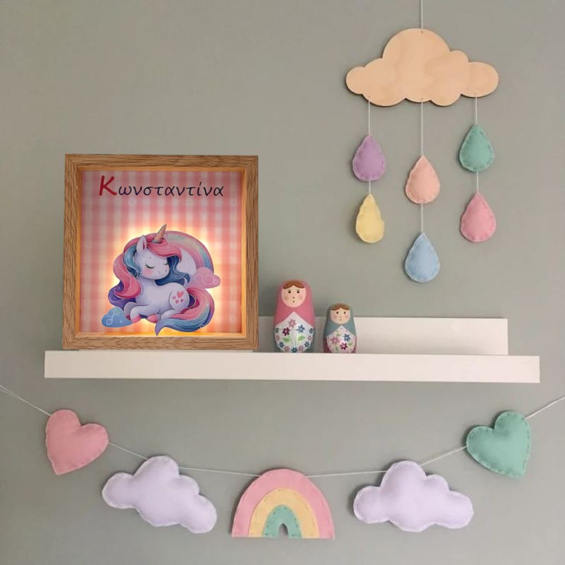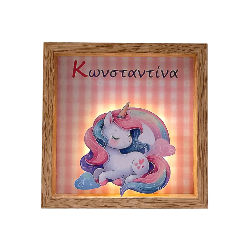 Επιτραπέζιο φωτιστικό κάδρο μονόκερος με όνομα