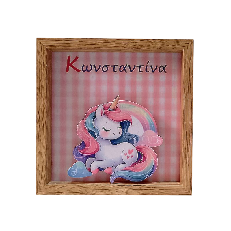 Επιτραπέζιο φωτιστικό κάδρο μονόκερος με το όνομα τη μικρούλας σας.