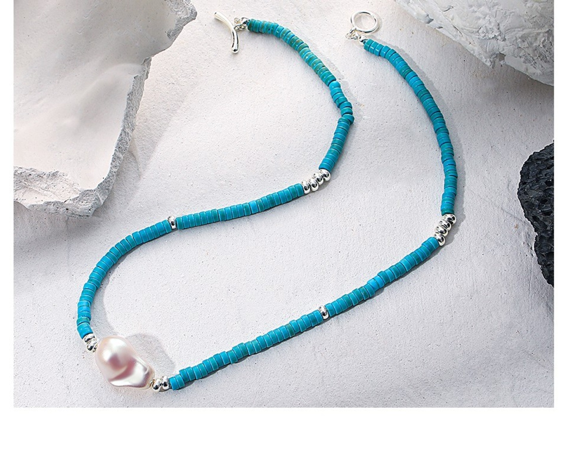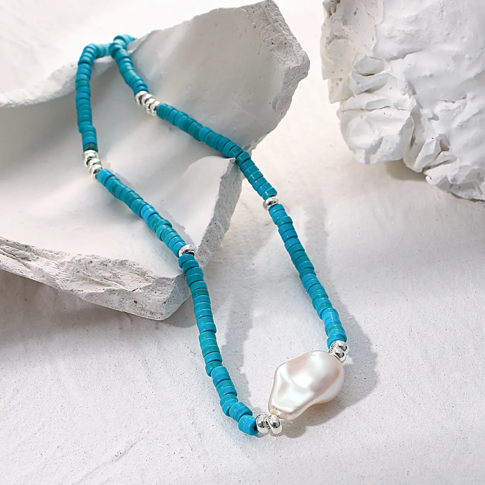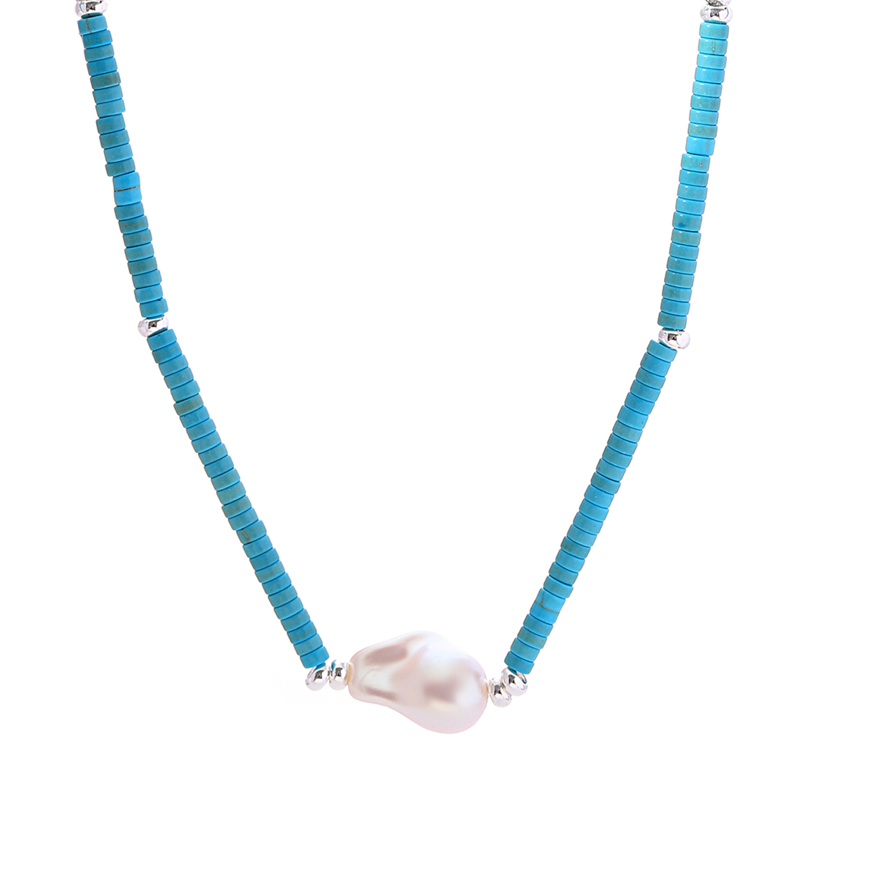Κολιέ ροδέλες τιρκουάζ – μεγάλο μπαρόκ μαργαριτάρι