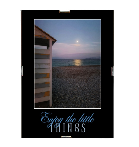Καδράκι με σχέδιο εκτυπωμένο σε φωτογραφικό χαρτί 13×18 cm. Εικονίζει μια παραλία. To καδράκι έχει τζάμι και γαντζάκια. Κρέμεται εύκολα σε καρφί στον τοίχο σας.