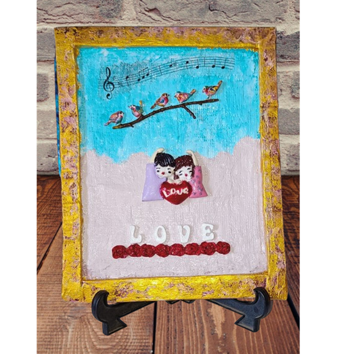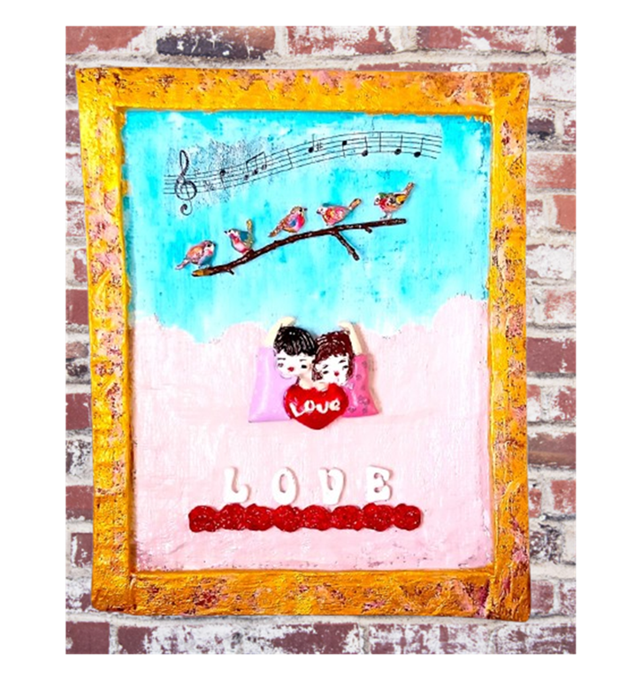 Δωρο Αγ. Βαλεντινου .Χειροποίητο κάδρο ή επιτραπέζιο διακοσμητικό σε μοντέρνο ύφος < Η μελωδια της αγαπης>