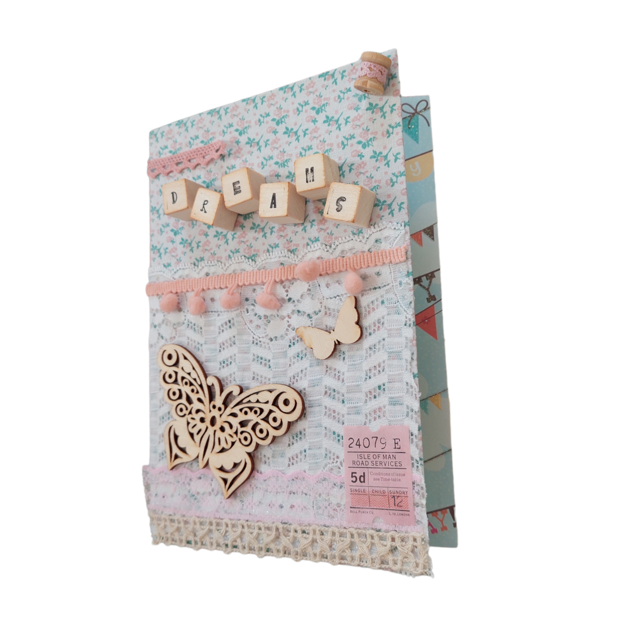 Ένα χειροποίητο σημειωματάριο (journal) για την καθημερινότητά σας. Μπορείτε να το έχετε κάθε στιγμή μαζί σας και να σημειώνετε ό,τι δεν θέλετε να ξεχάσετε ή ό,τι απλώς σας ευχαριστεί ή να κολλήσετε ακόμα και φωτογραφίες από τις αγαπημένες σας στιγμές. Περιέχει και μικρές θήκες κατάλληλες για να φυλάξετε ακόμα και μικρούλικα αναμνηστικά.