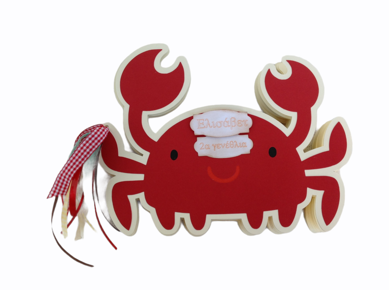 Ένα άλμπουμ φωτογραφιών άκρως καλοκαιρινό έτοιμο να δεχτεί τις καλύτερες και πιο χαρακτηριστικές φωτογραφίες αυτού του καλοκαιριού. Εσωτερικά οι 20 σελίδες του είναι διακοσμημένες σε καλοκαιρινό στυλ με πολλά πολλά καβουράκια. Εξωτερικά μπορεί να προστεθεί όνομα ή οποιδήποτε μήνυμα επιθυμείτε.Οι διαστάσεις του είναι 30 x 25 εκατοστά. Παραδίδεται σε κουτί με την αντίστοιχη διακόσμηση.