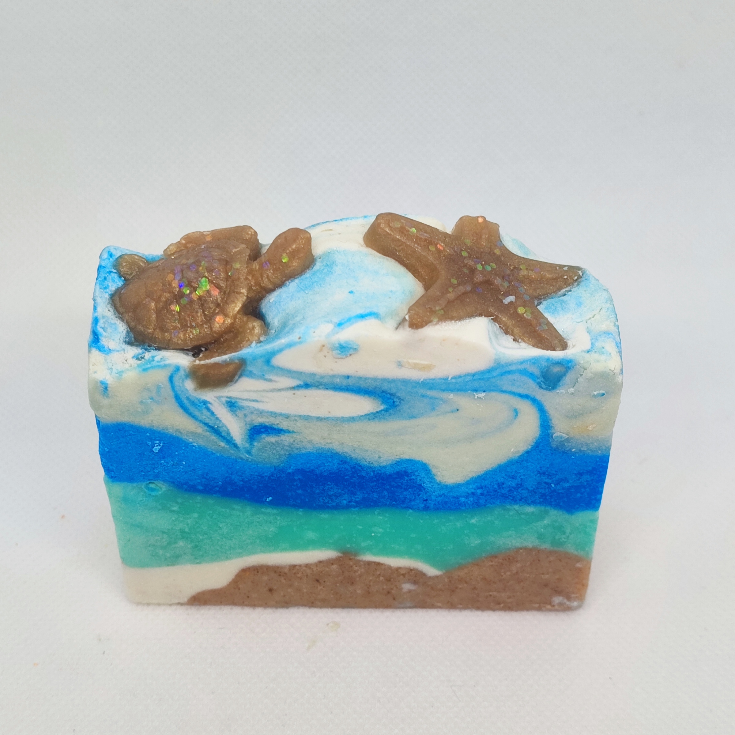 Αυτό το χειροποίητο σαπούνι προσφέρει ένα υπέροχο καλοκαιρινό άρωμα που θυμίζει πέτρα και θάλασσα, μεταφέροντάς σας σε γαλαζοπράσινα νερά. Κατασκευασμένο με την ψυχρή μέθοδο, το σαπούνι αυτό είναι πλούσιο σε θρεπτικά συστατικά, παρέχοντας ενυδάτωση και περιποίηση στην επιδερμίδα σας.